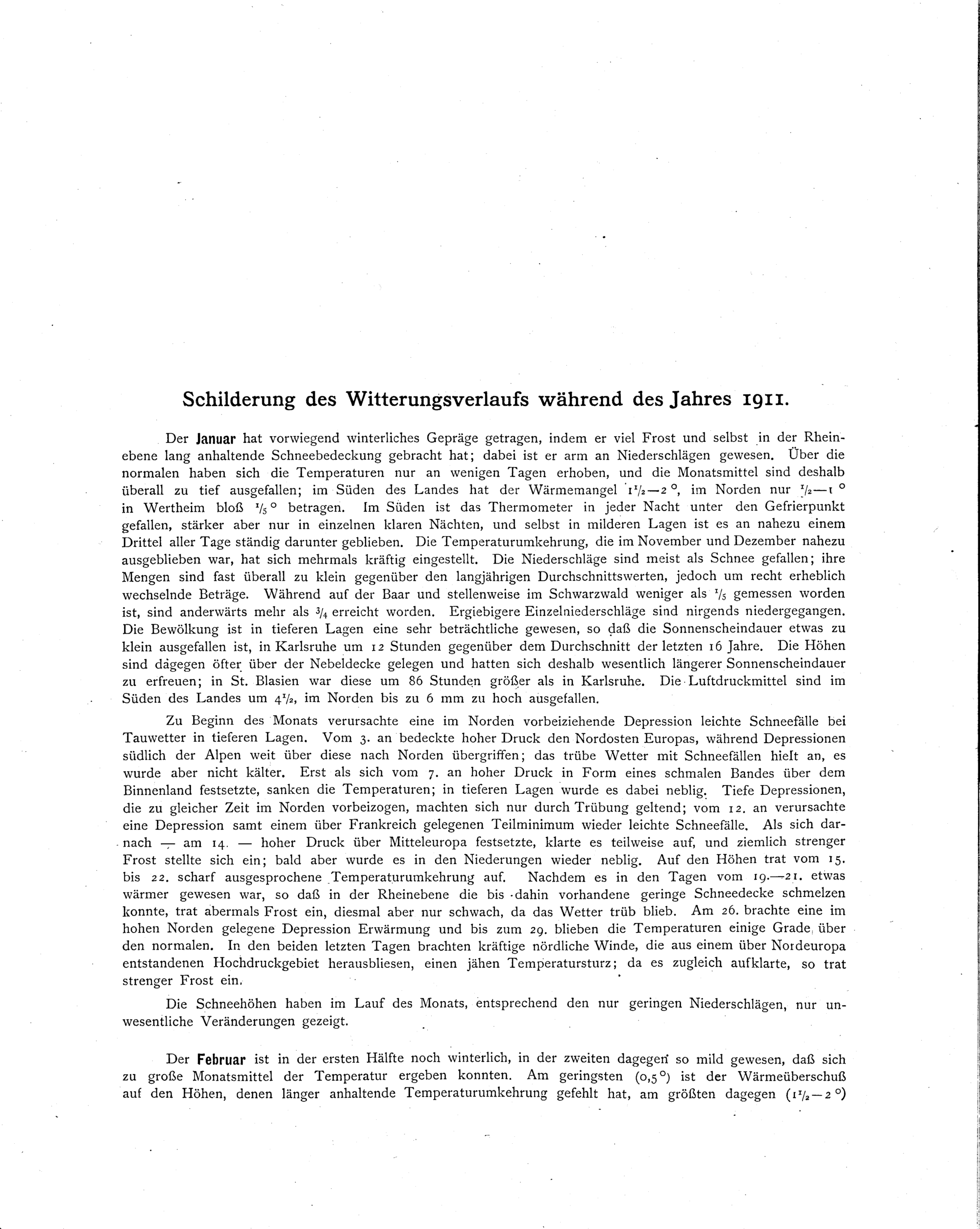 Schilderung des Witterungsverlaufs während des Jahres 1911