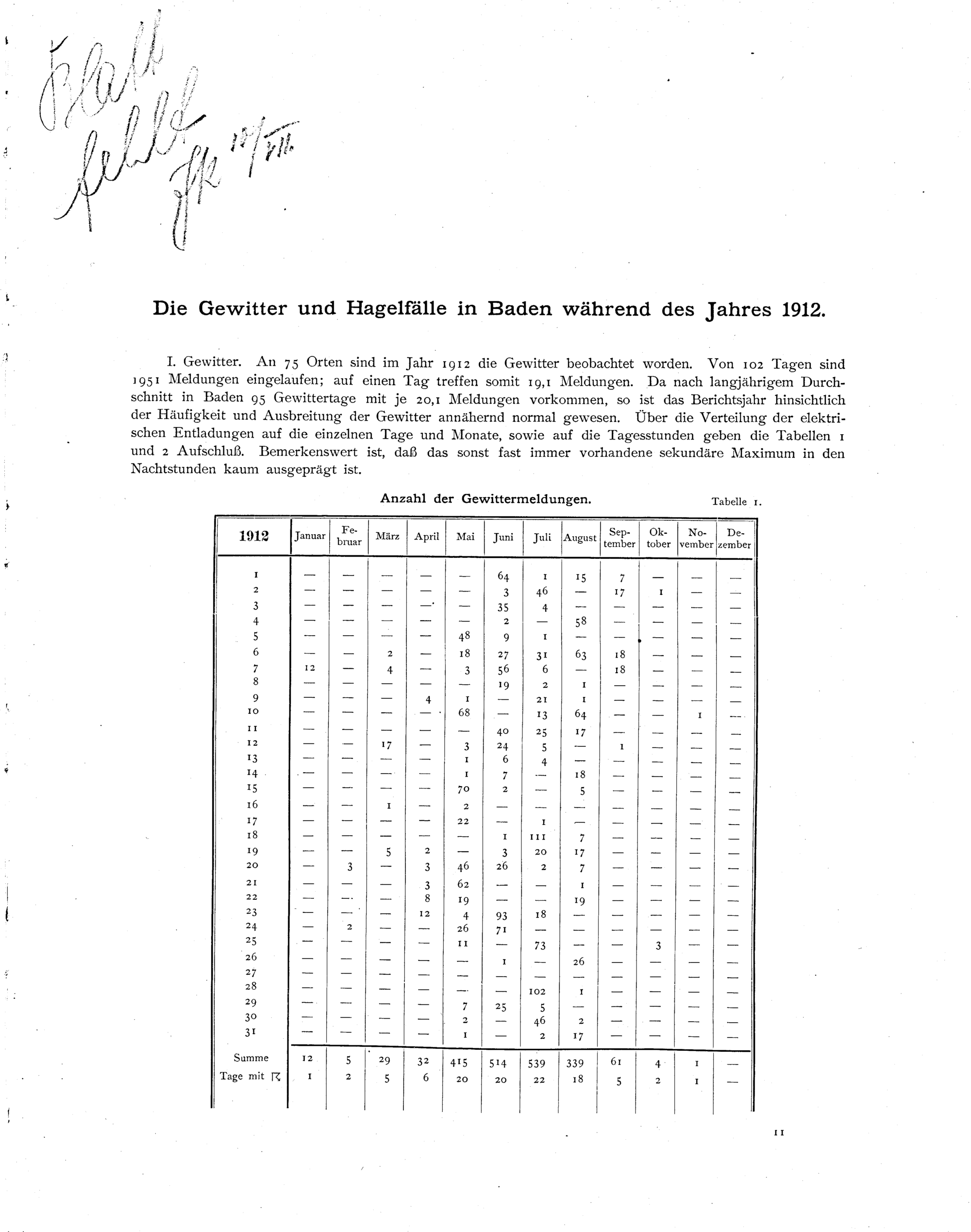 Die Gewitter und Hagelfälle in Baden während des Jahres 1912