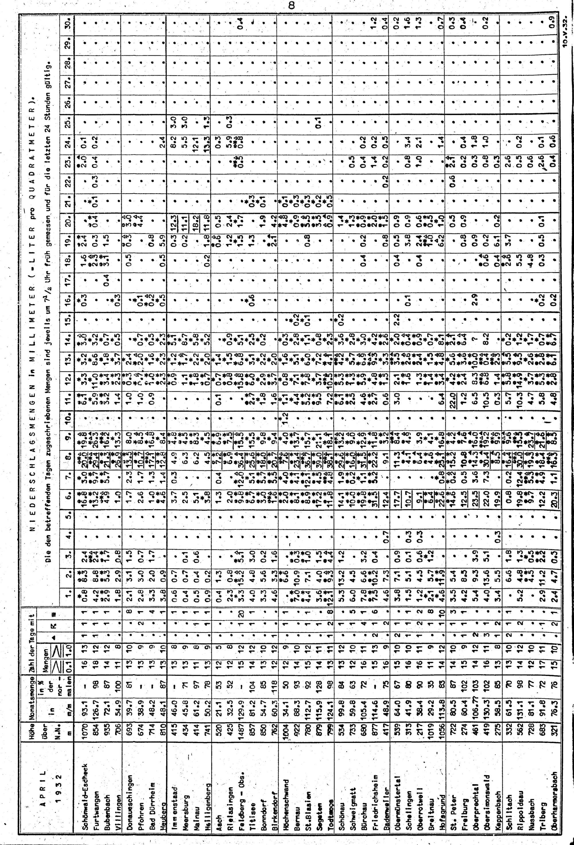 Anhang: Tägliche Niederschlagsbeobachtungen sämtlicher meteorologischer Stationen...