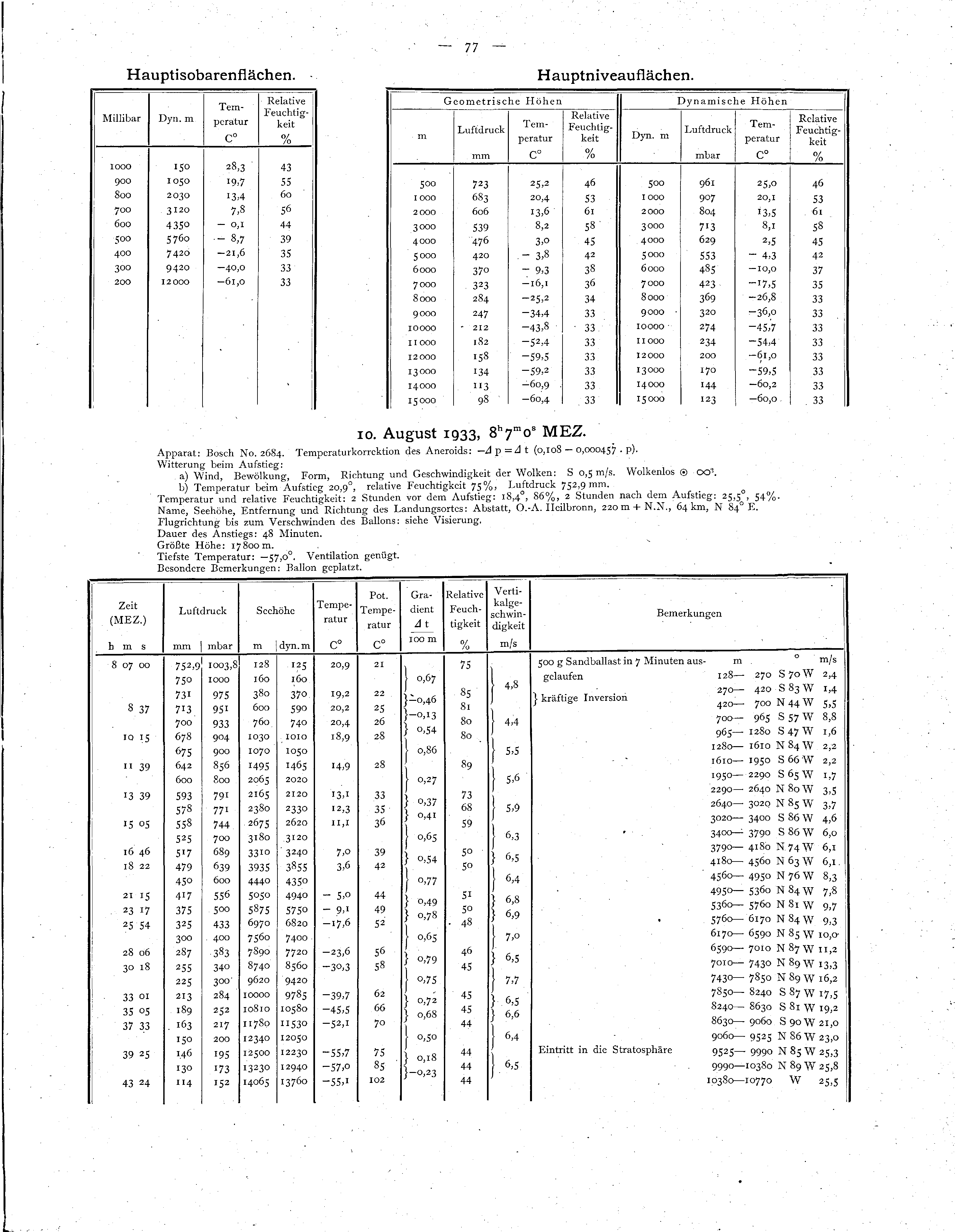 Die Karlsruher Registrierballonfahrten im Jahre 1933