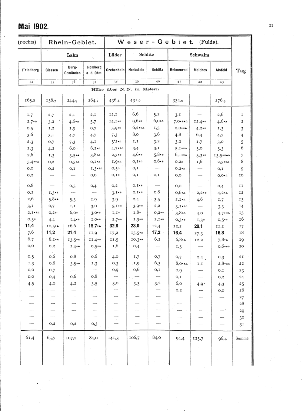 Niederschlagsbeobachtungen an den meteorologischen Stationen im Grossherzogtum H...