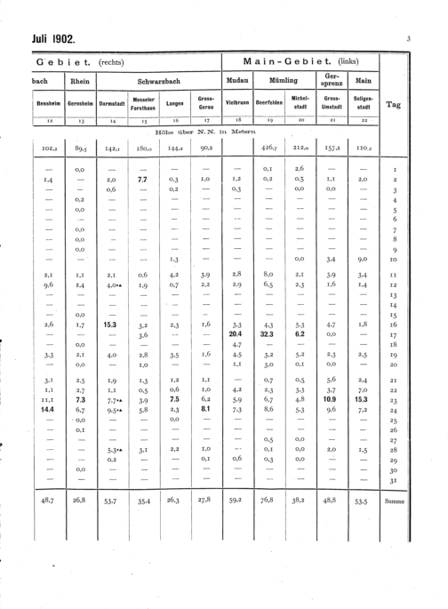 Niederschlagsbeobachtungen an den meteorologischen Stationen im Grossherzogtum H...