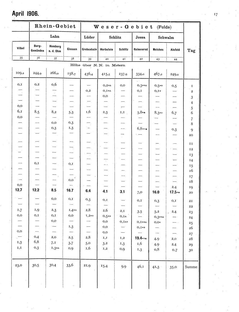 Niederschlagsbeobachtungen an den meteorologischen Stationen im Grossherzogtum H...