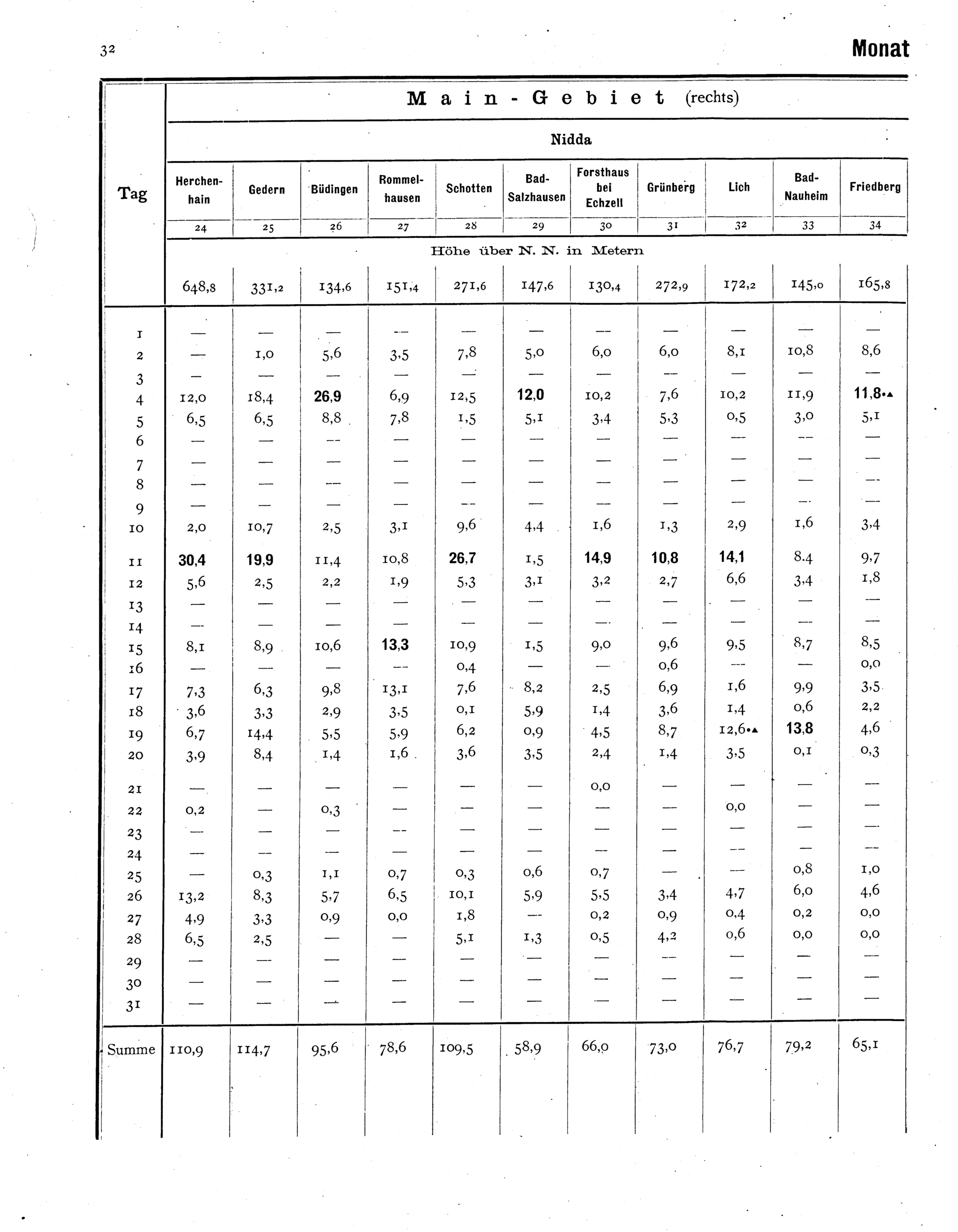 Niederschlagsbeobachtungen an den meteorologischen Stationen im Grossherzogtum H...