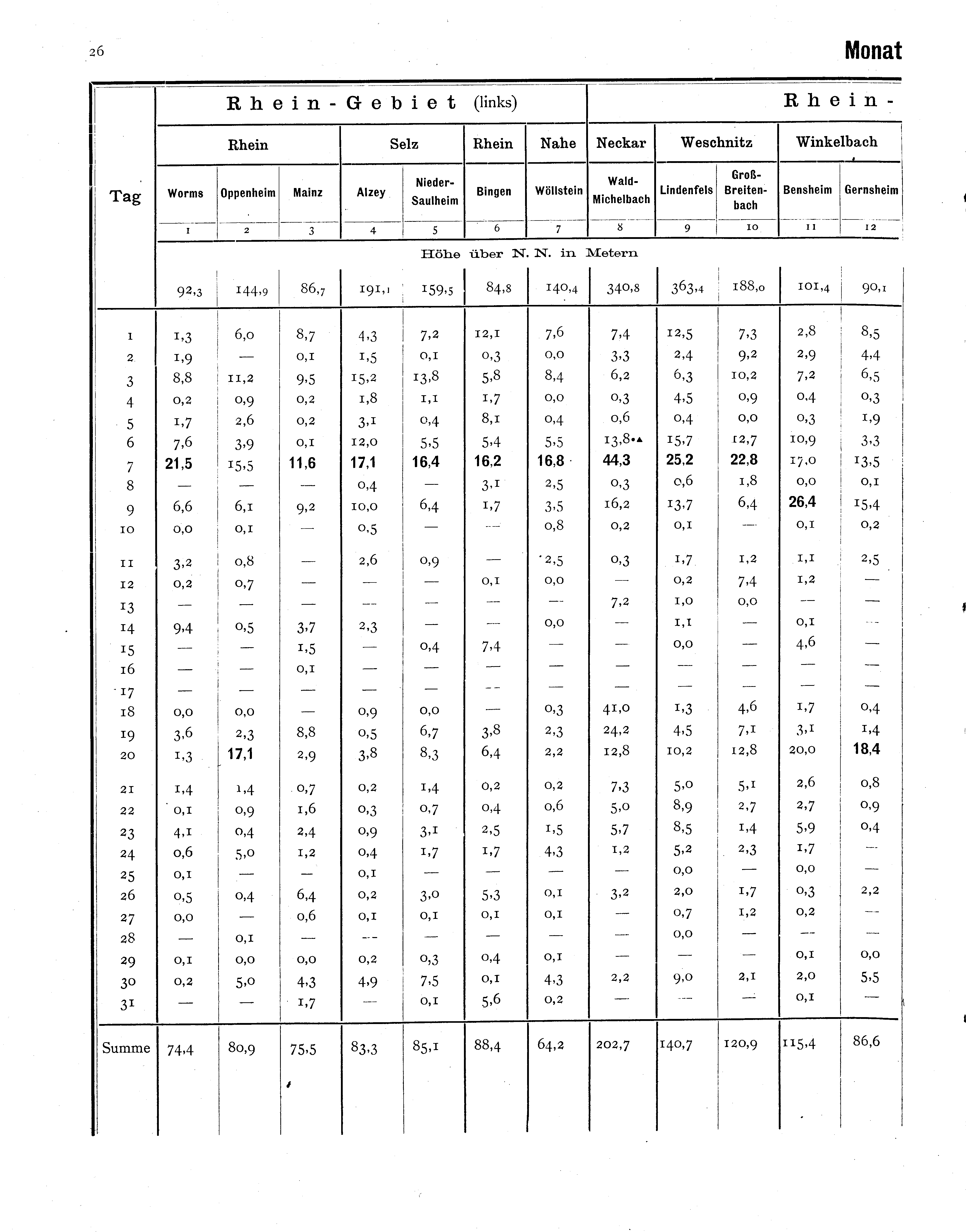 Niederschlagsbeobachtungen an den meteorologischen Stationen im Grossherzogtum H...