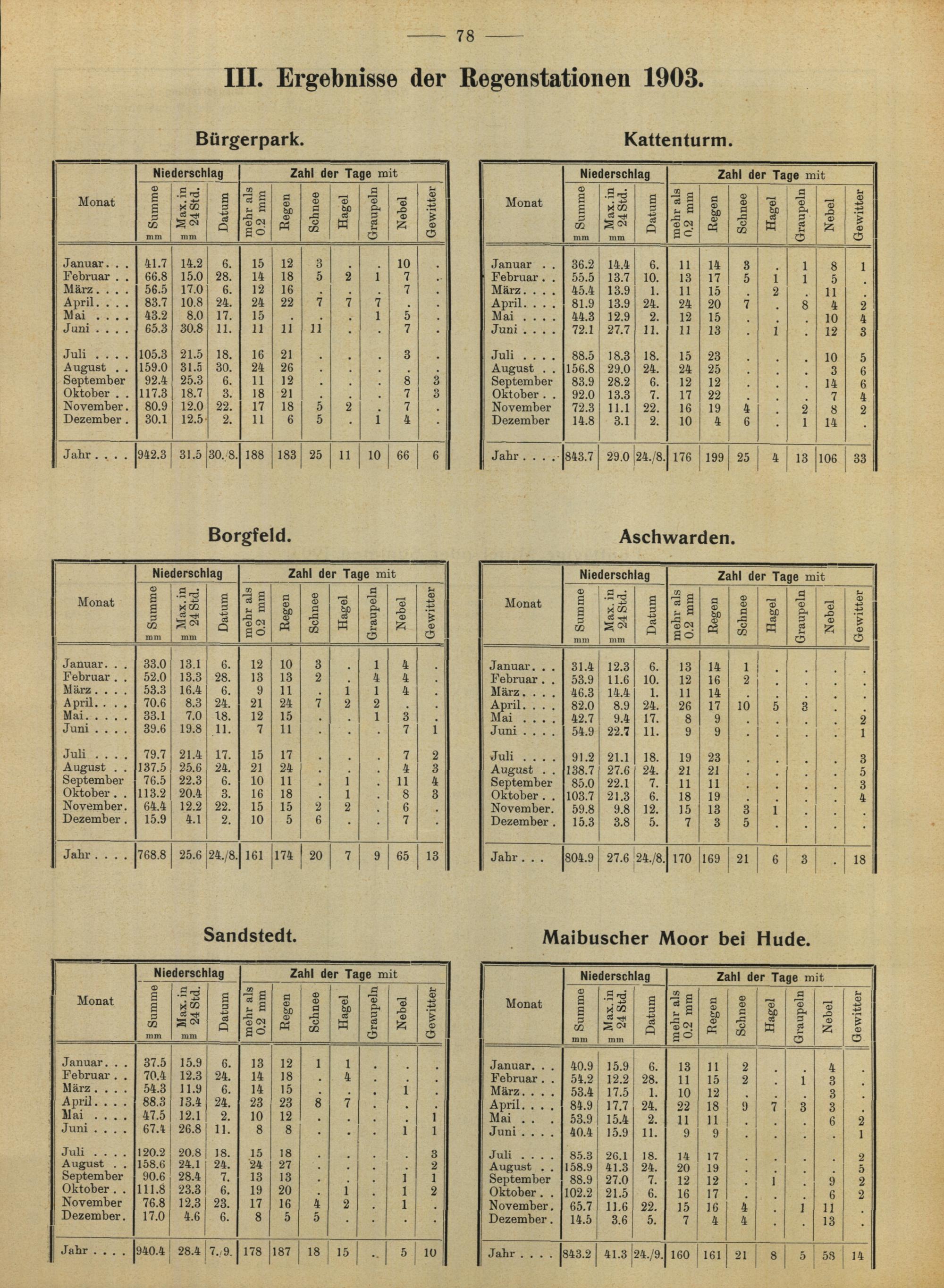 III. Ergebnisse der Beobachtungen der Regenstationen