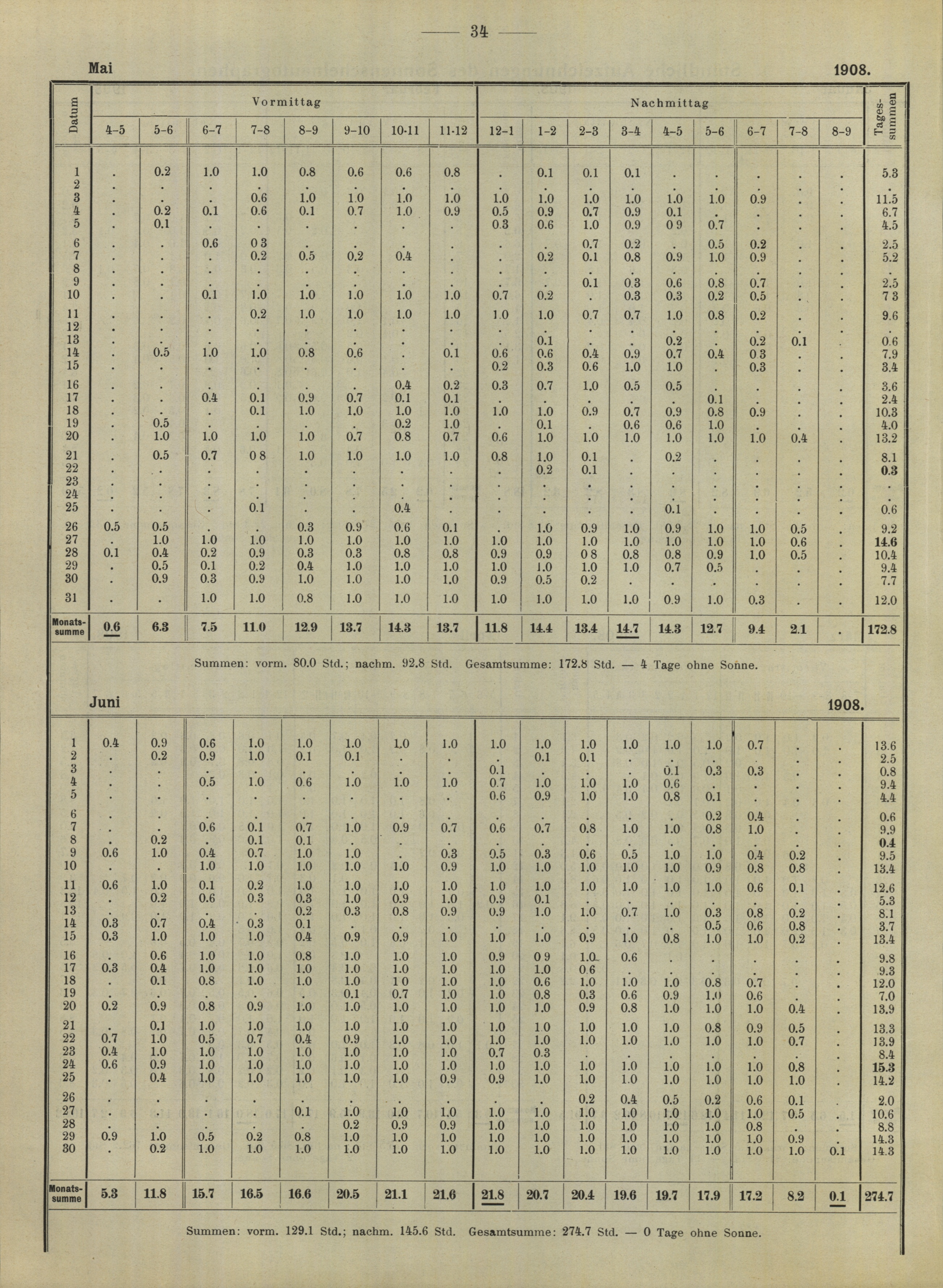 II. Stündliche Aufzeichnungen