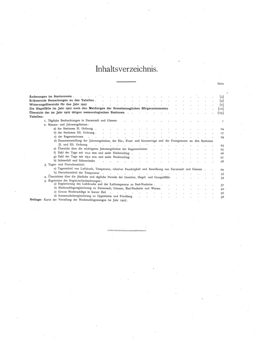 Übersicht der im Jahre 1907 tätigen meteorologischen Stationen