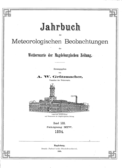 Jahrbuch der meteorologischen Beobachtungen der Wetterwarte der Magdeburgischen ...