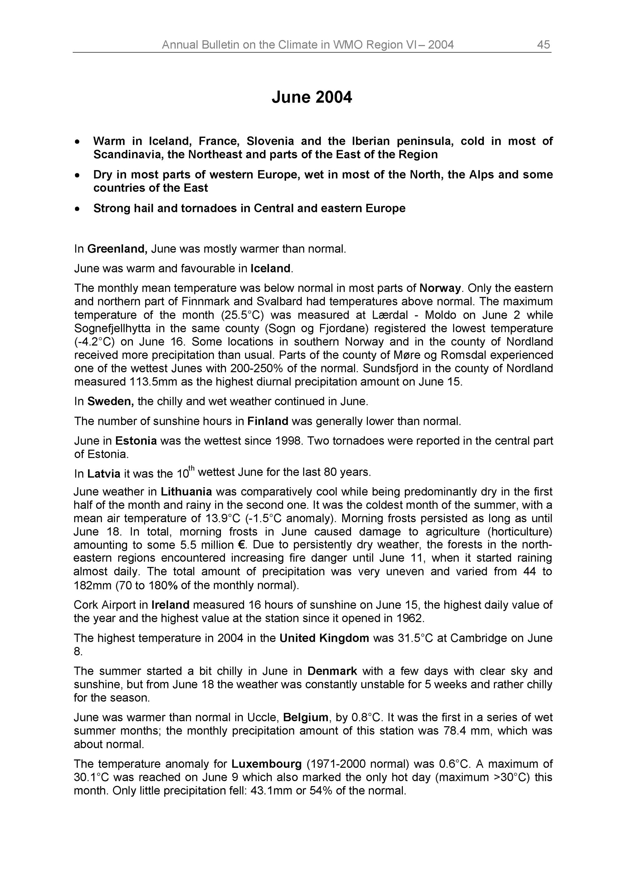 Annual bulletin on the climate in WMO Region VI, Europe and Middle East
