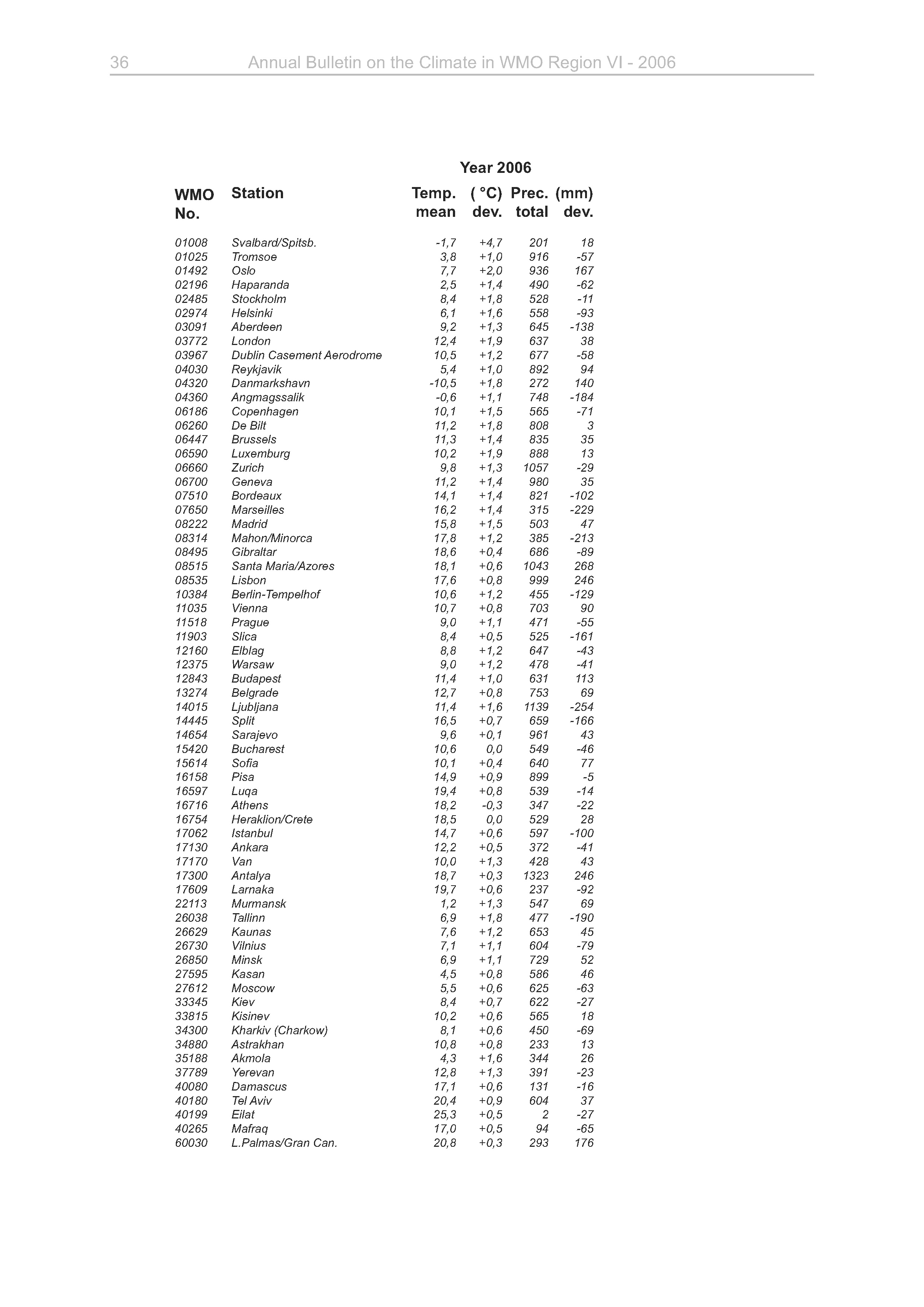 Annual bulletin on the climate in WMO Region VI, Europe and Middle East