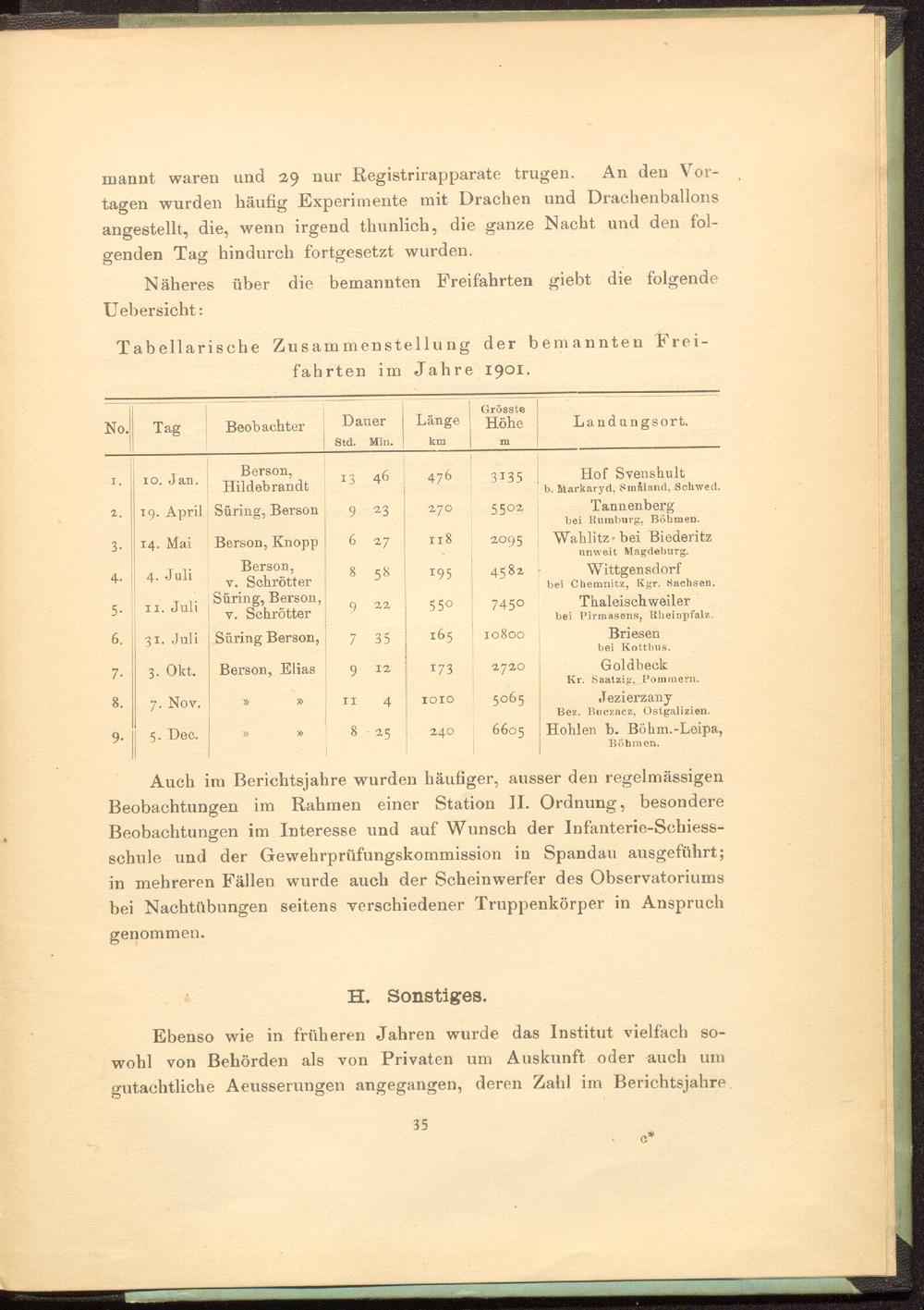 Bericht über die Tätigkeit des Preussischen Meteorologischen Instituts