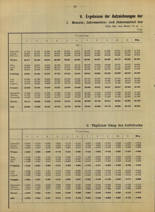 V. Ergebnisse der Aufzeichnungen der Registrierapparate für das Lustrum 1891-1895