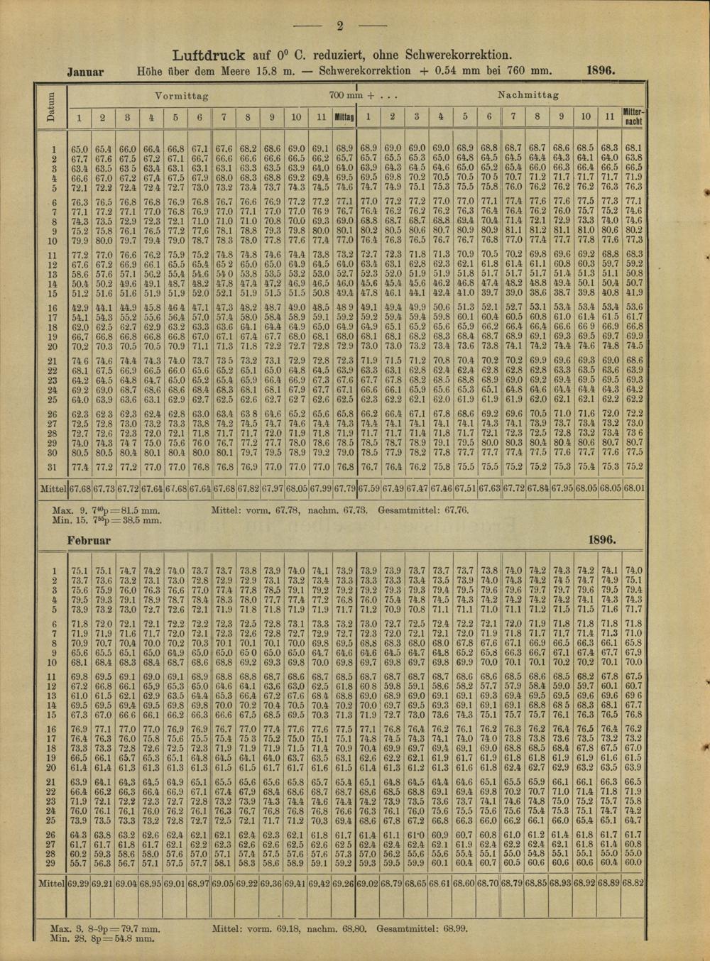 Reduktion der Barometerstande auf das Meeresniveau und auf Normalschwere