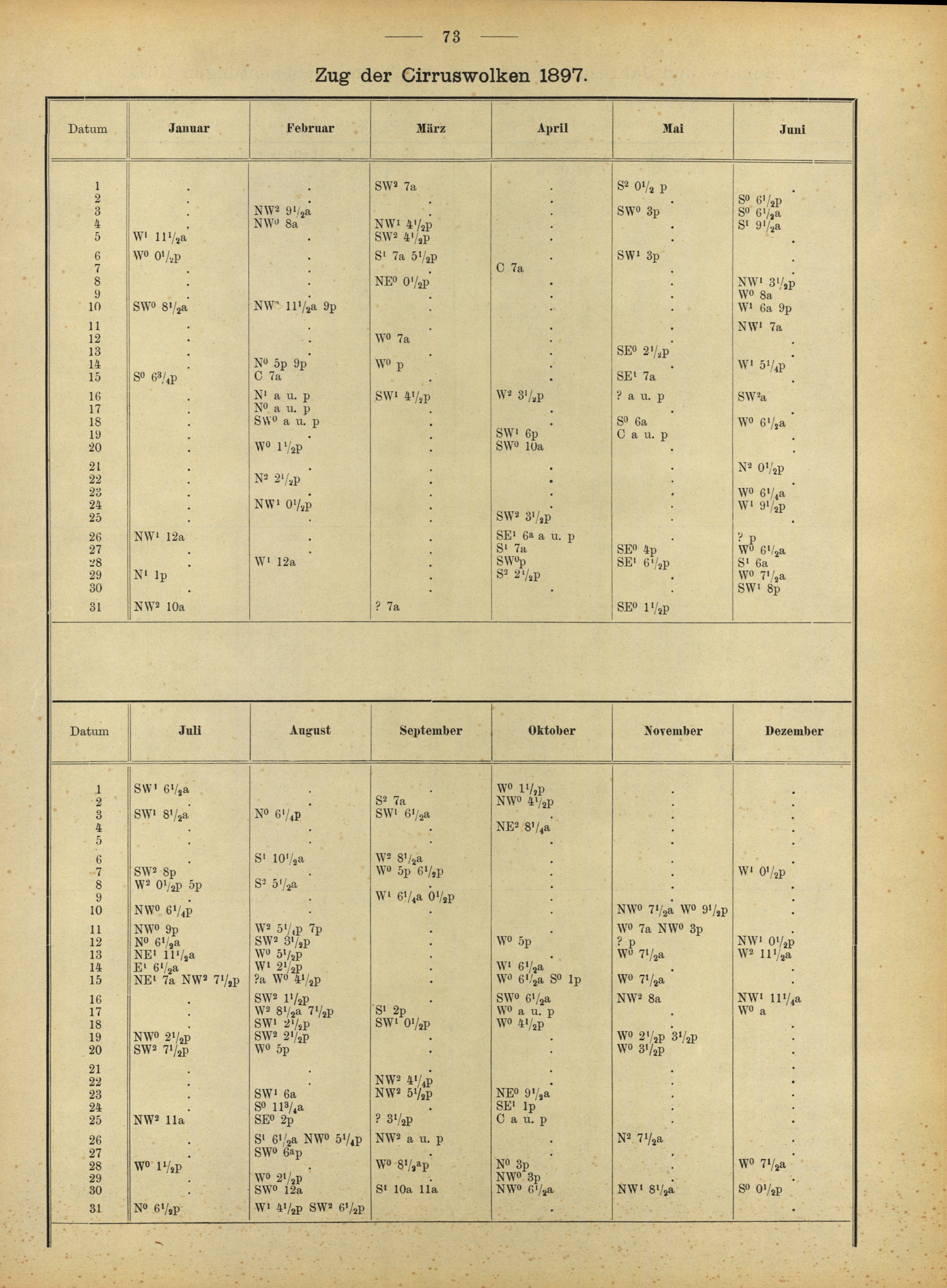 I. Stündliche Aufzeichnungen