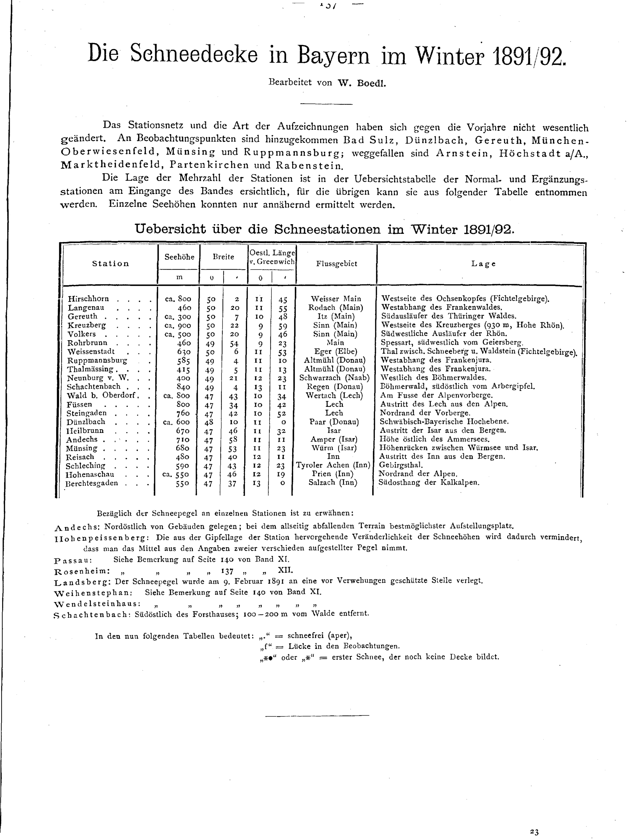 Die Schneedecke in Bayern im Winter 1891/92 / W. Boedl