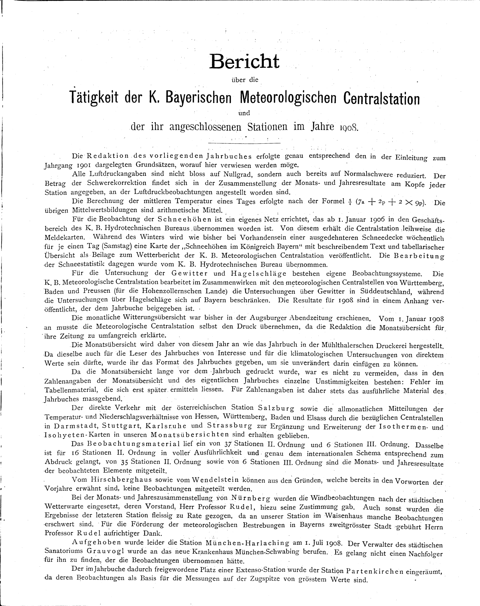Bericht über die Tätigkeit der K. Bayerischen Meteorologischen Centralstation und...