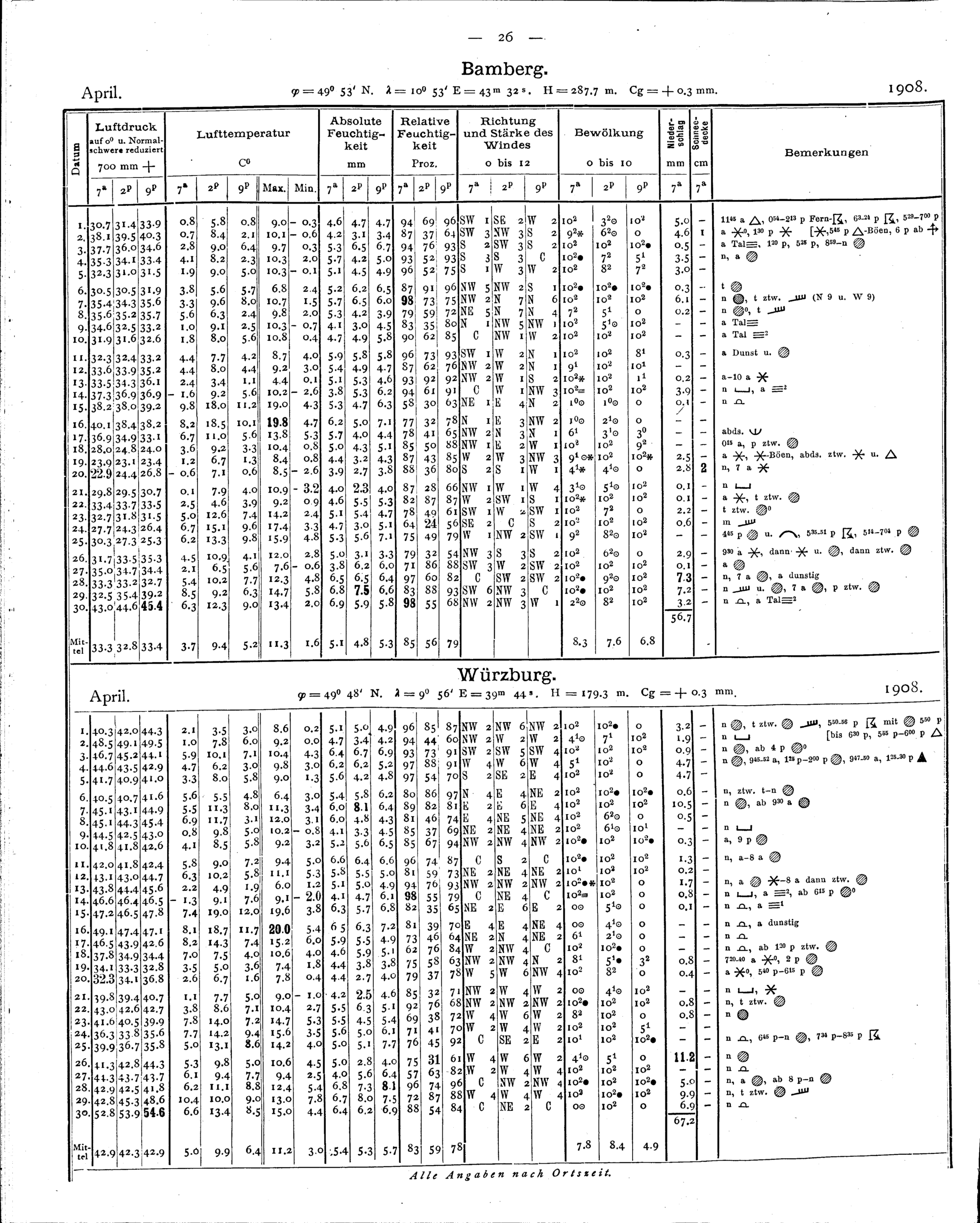 Tägliche Beobachtungen der Stationen II. Ordnung