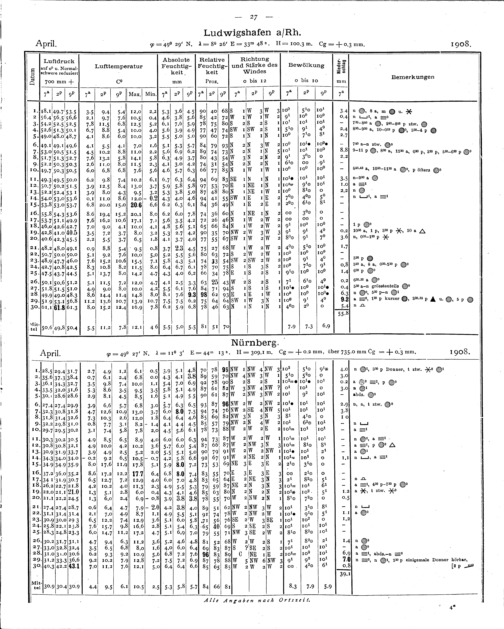 Tägliche Beobachtungen der Stationen II. Ordnung