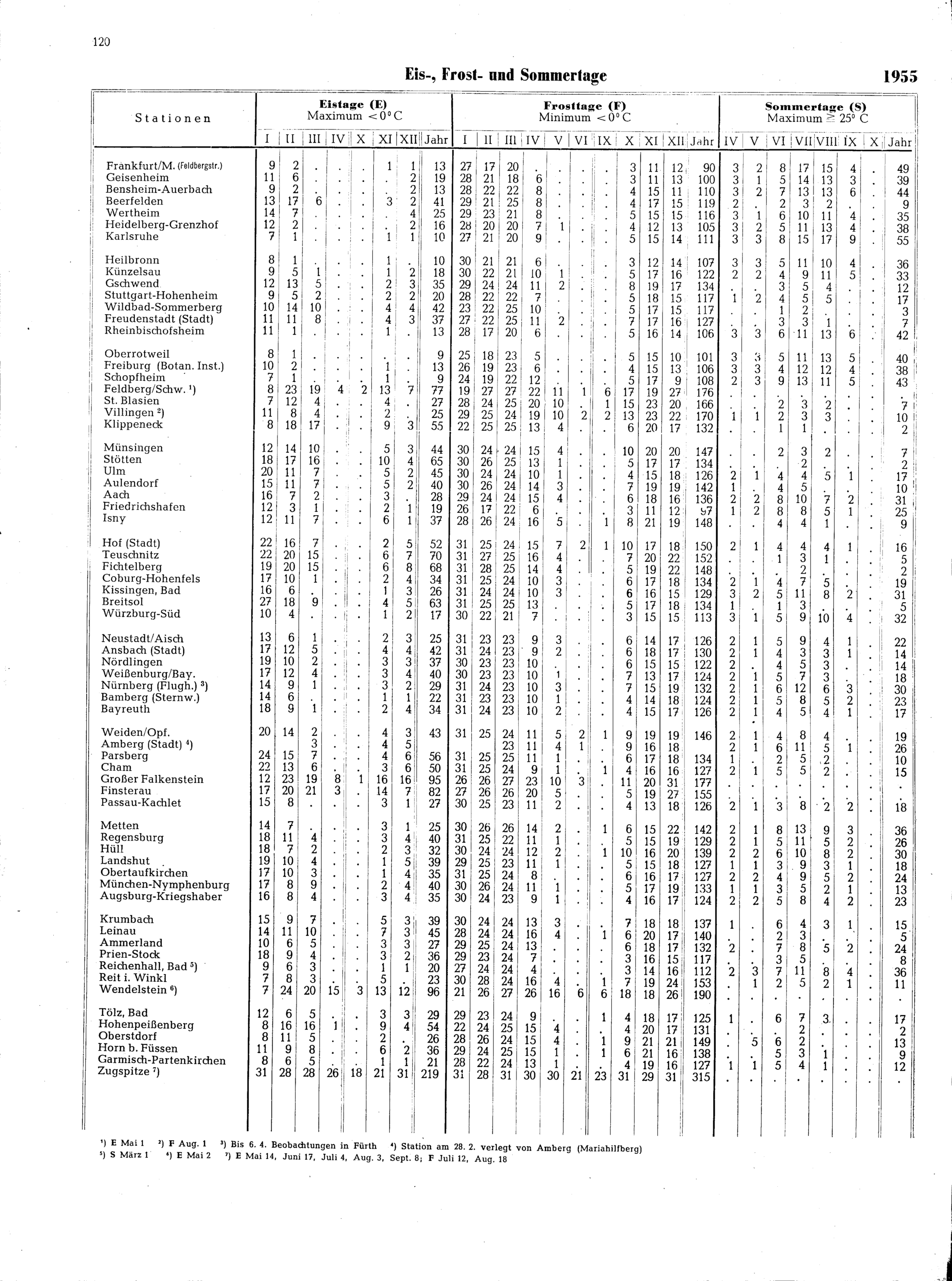 Eis-, Frost- und Sommertage von 140 Stationen