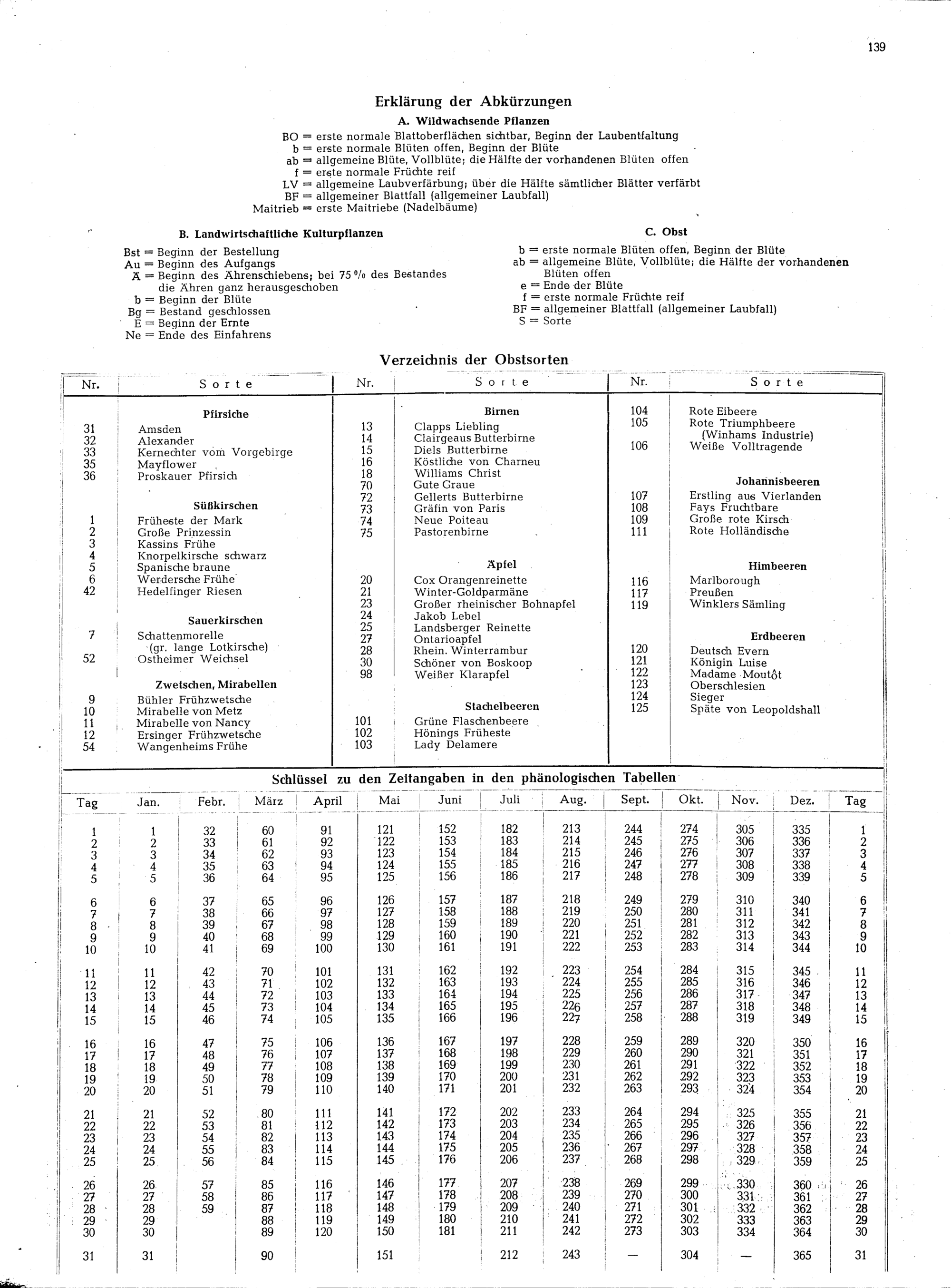 Erklärung der Abkürzungen, Verzeichnis der Obstarten und Schlüssel zu den Zeita...