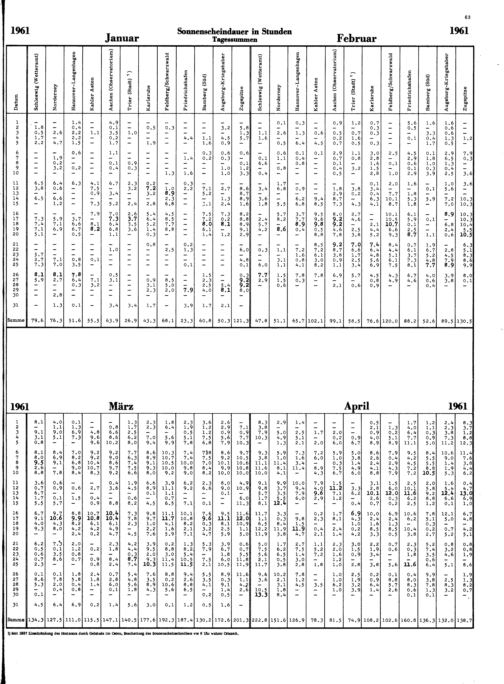 Sonnenscheindauer nach Tagessummen von 12 Stationen