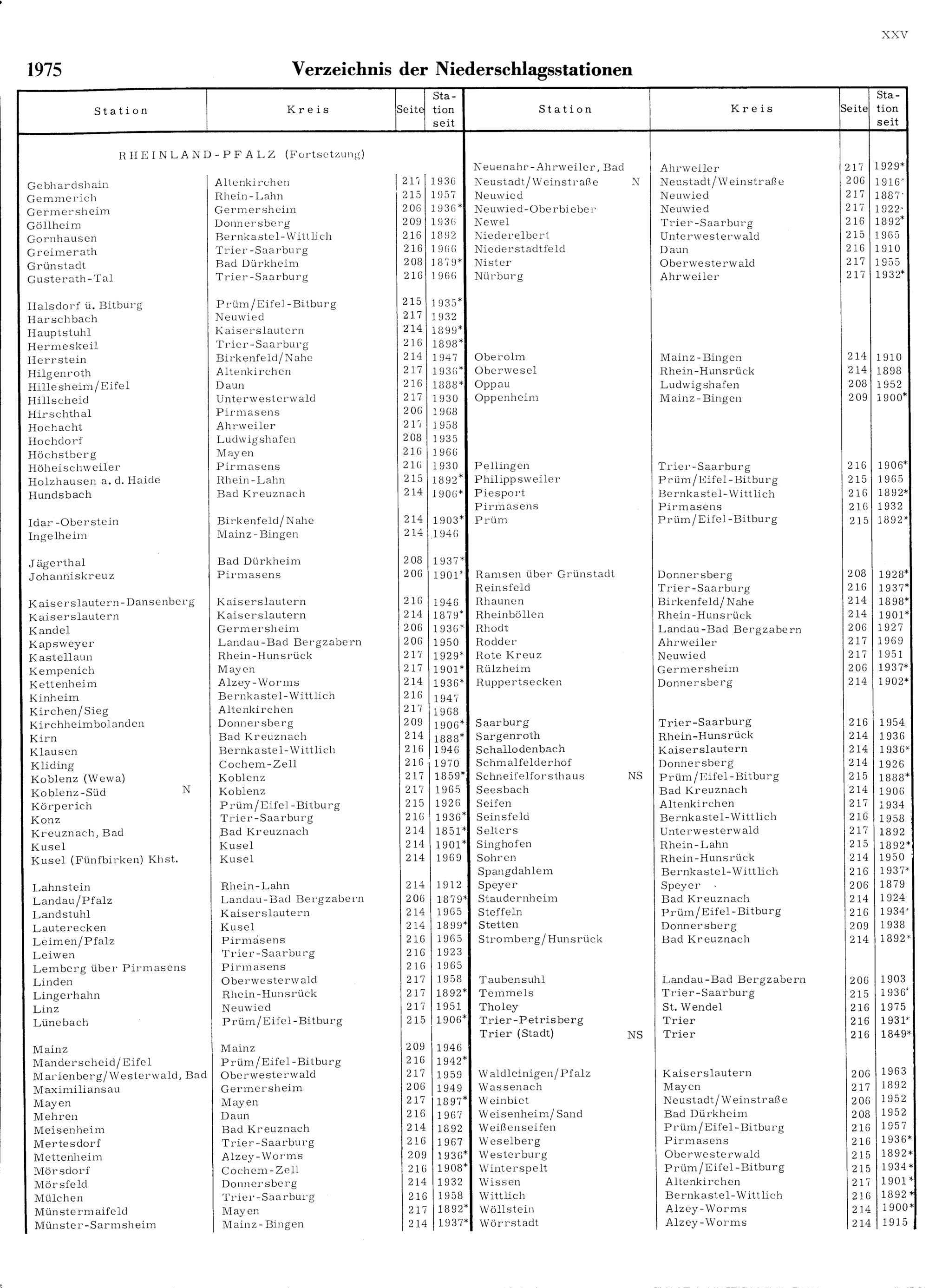 Verzeichnis der Niederschlagsstationen