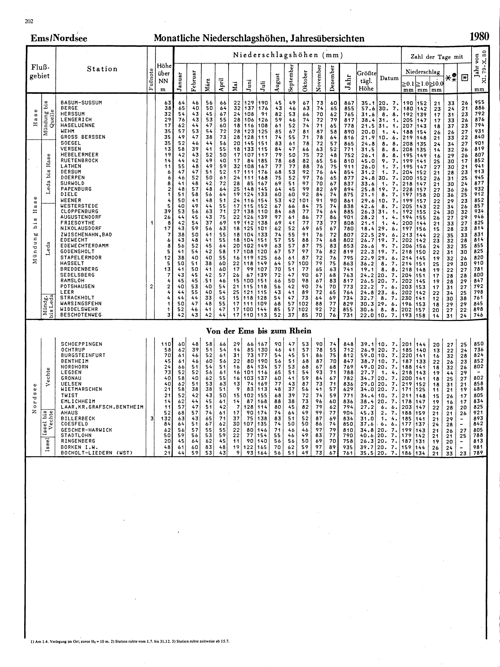 Monatliche Niederschlagshöhen, Jahresübersichten von ca. 3000 Stationen