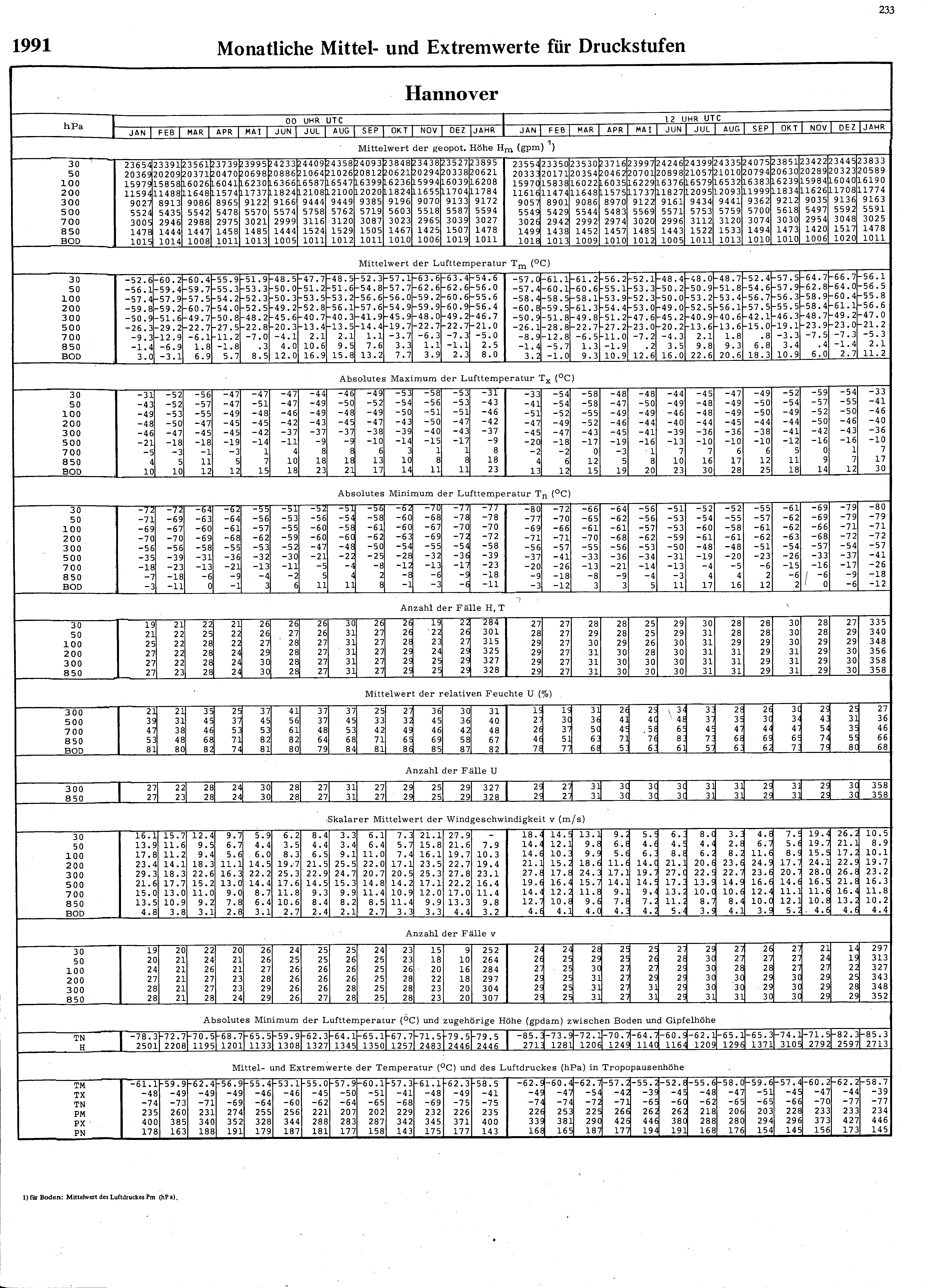 Monatliche Mittel- und Extremwerte für Druckstufen