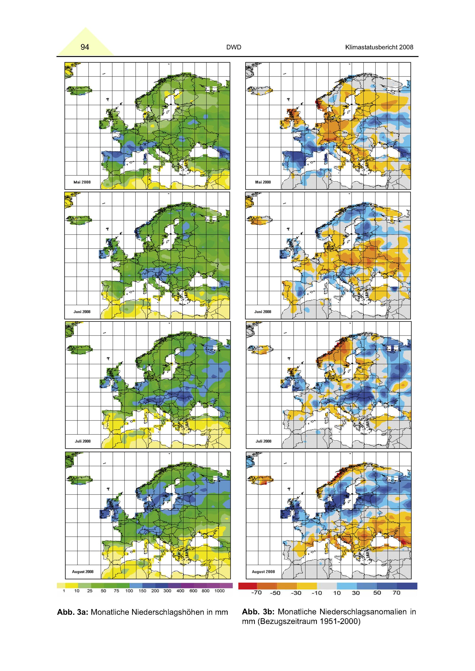 Zeitlich-räumliche Verteilung der Gebietsniederschläge in Europa