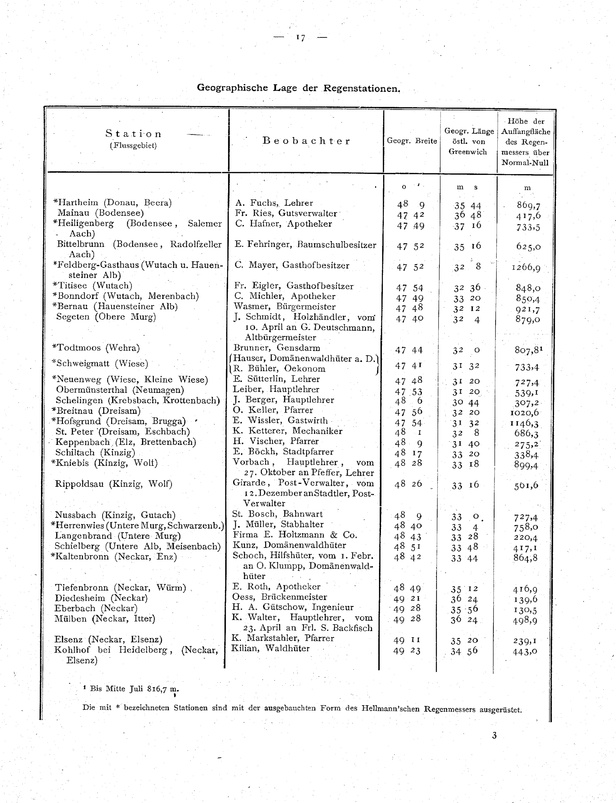Geographische Lage der Regenstationen