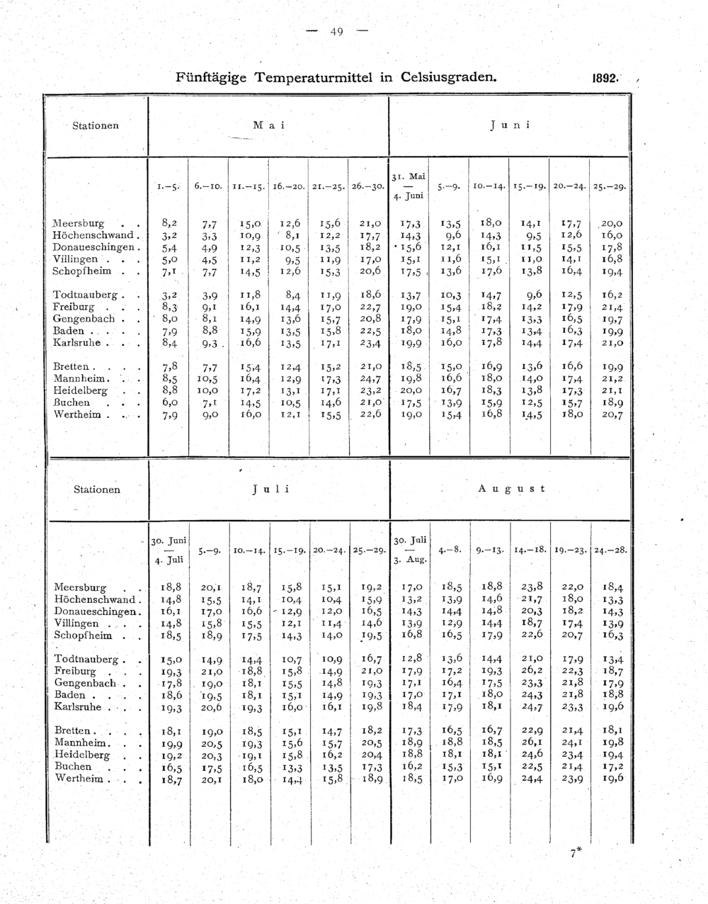 Fünftägige Temperaturmittel in Celsiusgraden