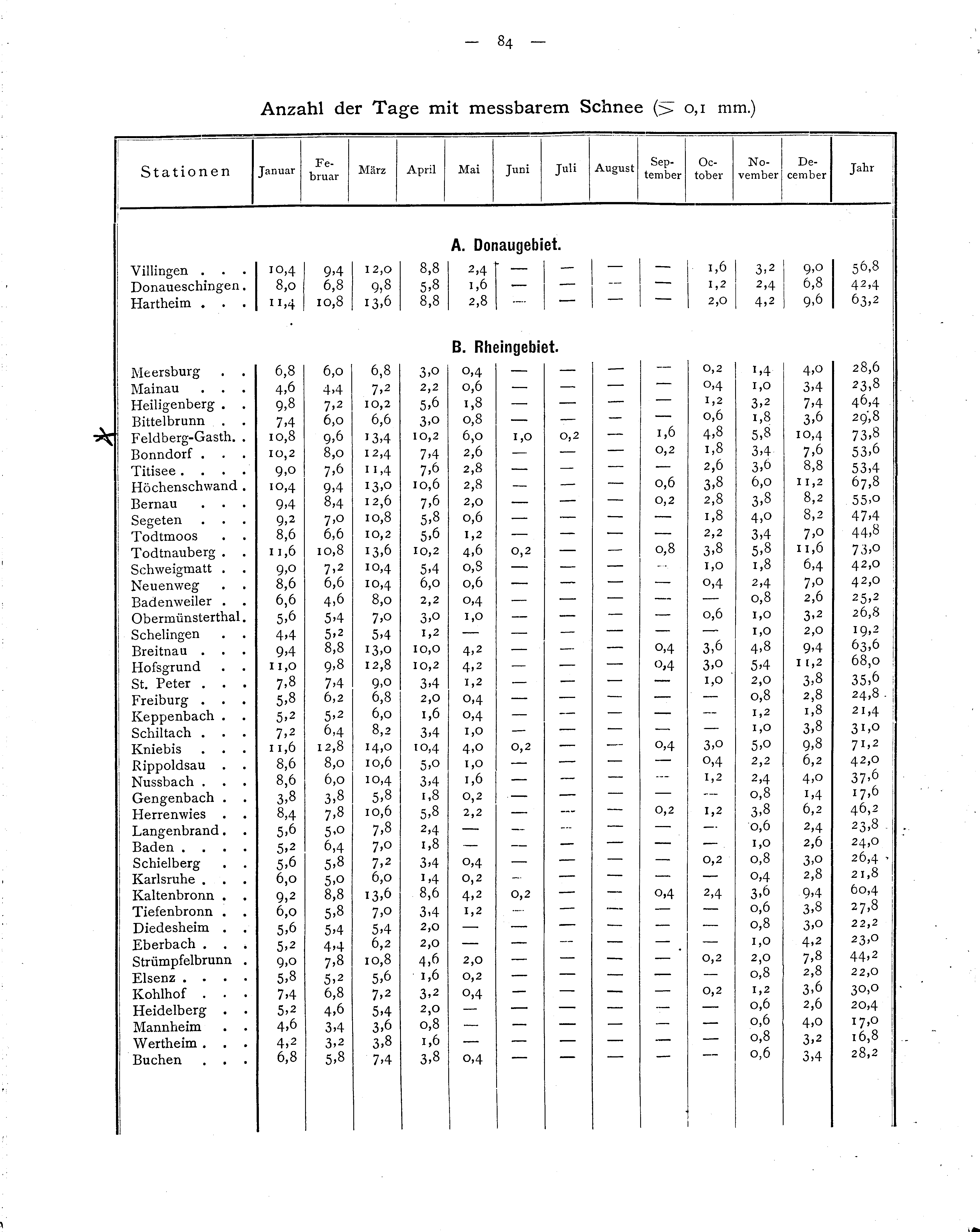 Anzahl der Tage mit messbarem Schnee