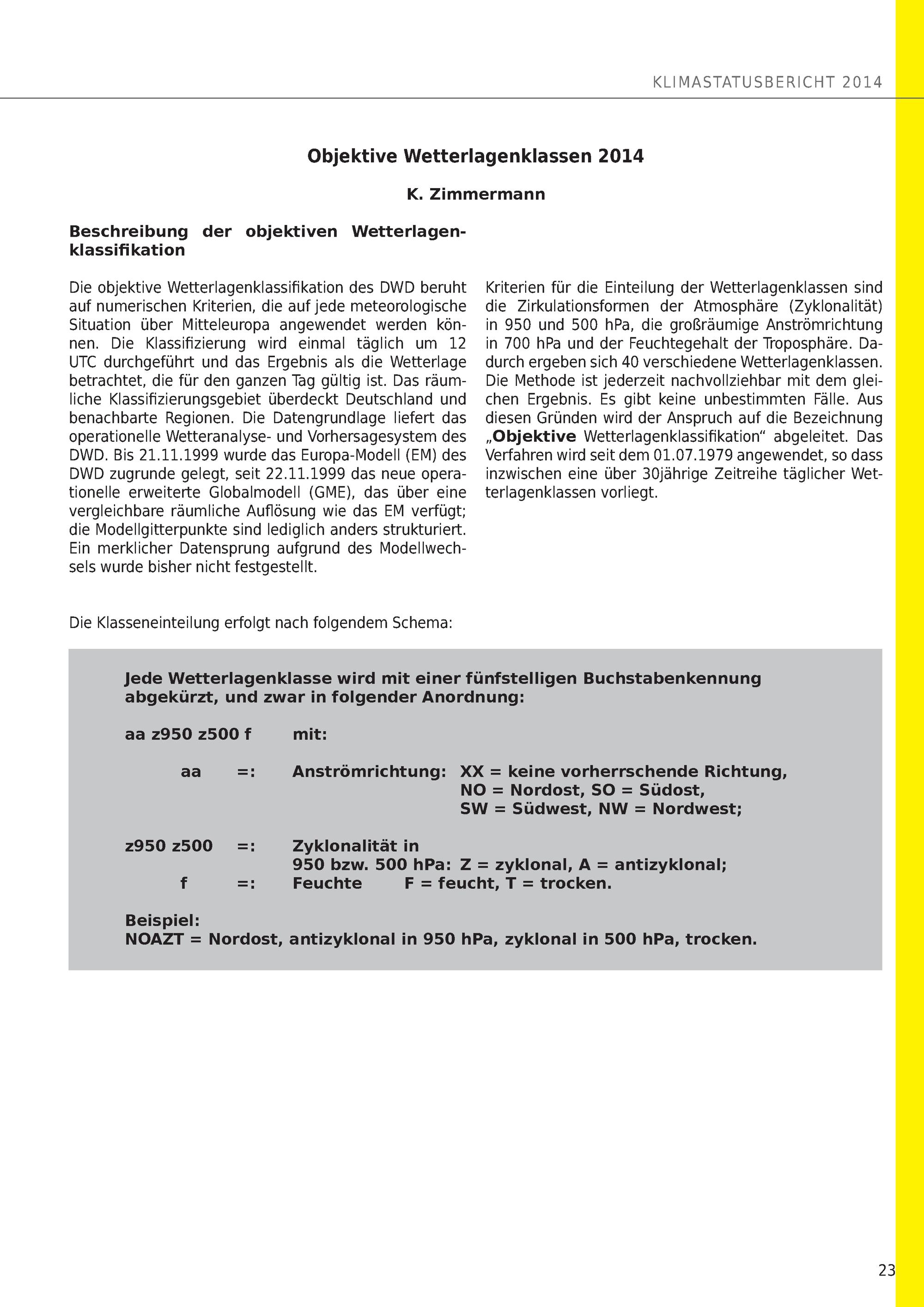 Objektive Wetterlagenklassen 2014