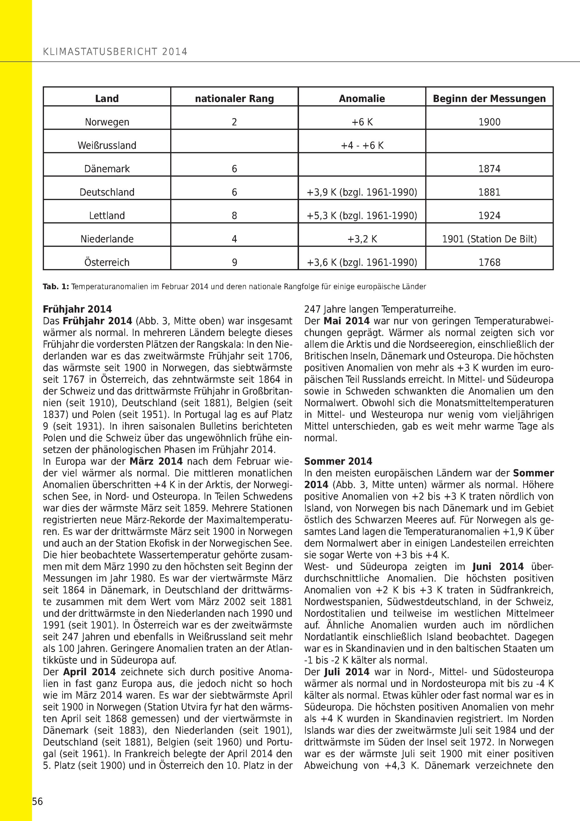 Jahreszeitlicher Rückblick auf das Klima in Europa 2014