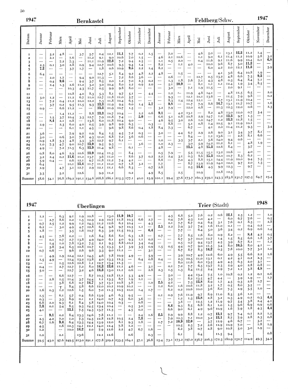 I Tägliche Beobachtungen vom Feldberg/Schw. (1945-1952) mit Textnachträgen zum...