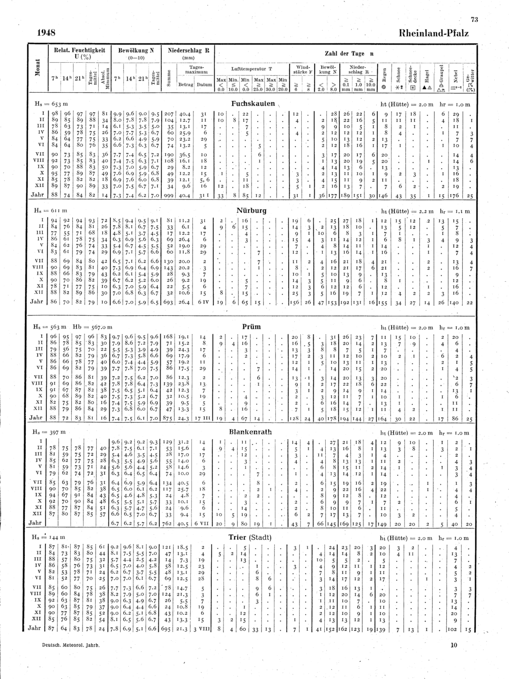 II Monats- und Jahresübersichten ausgewählter Stationen für