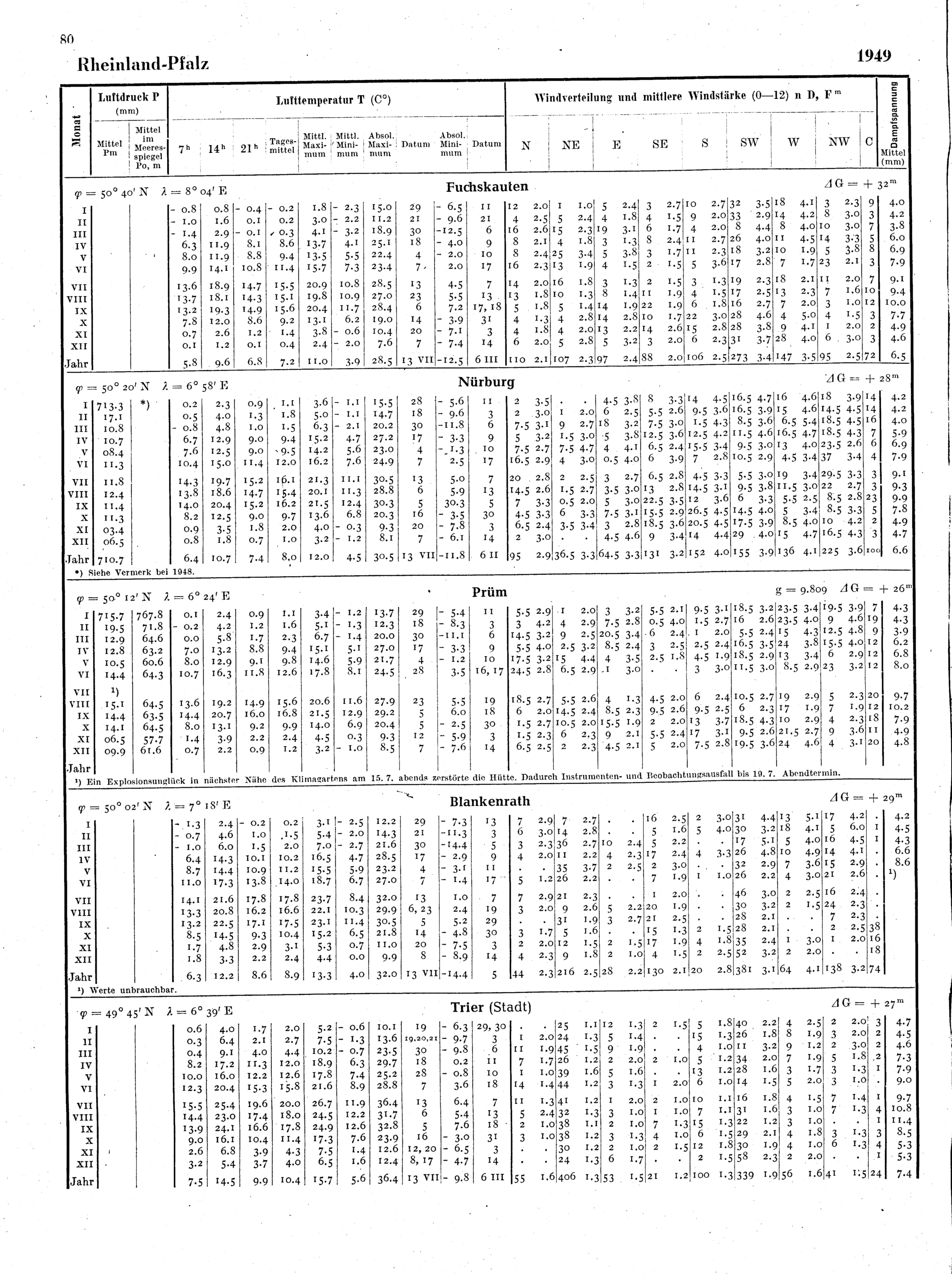 II Monats- und Jahresübersichten ausgewählter Stationen für