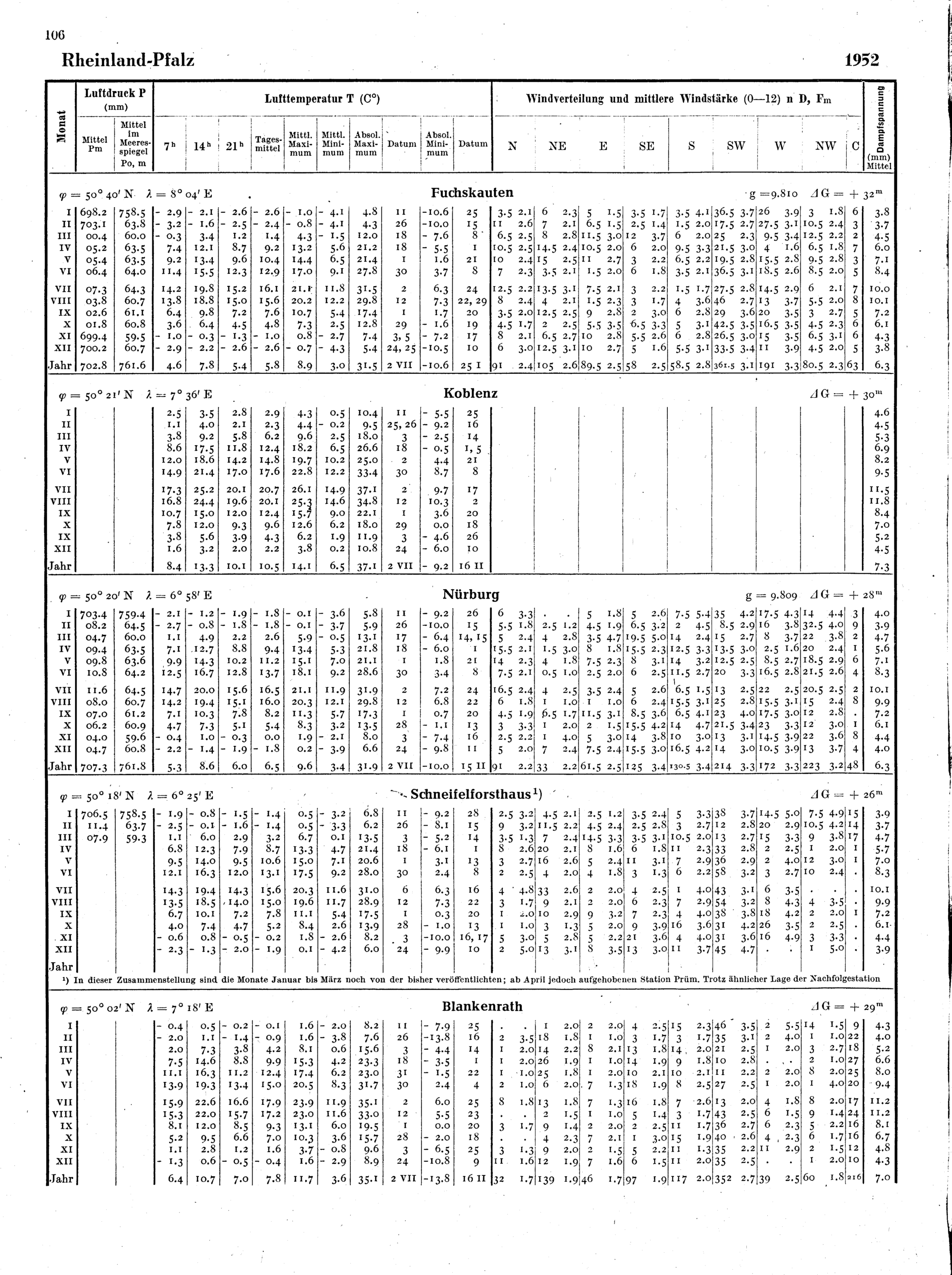 II Monats- und Jahresübersichten ausgewählter Stationen für