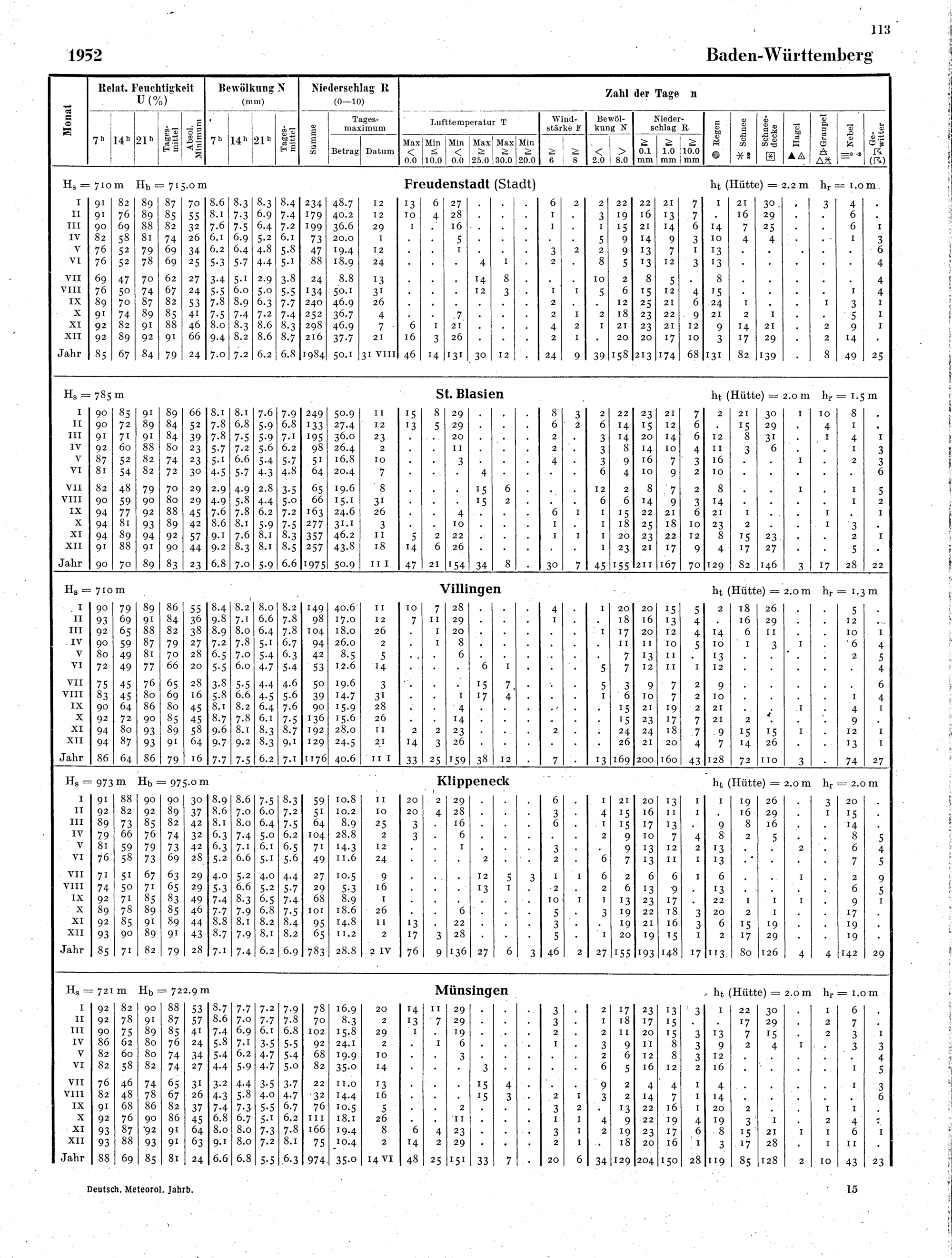 II Monats- und Jahresübersichten ausgewählter Stationen für