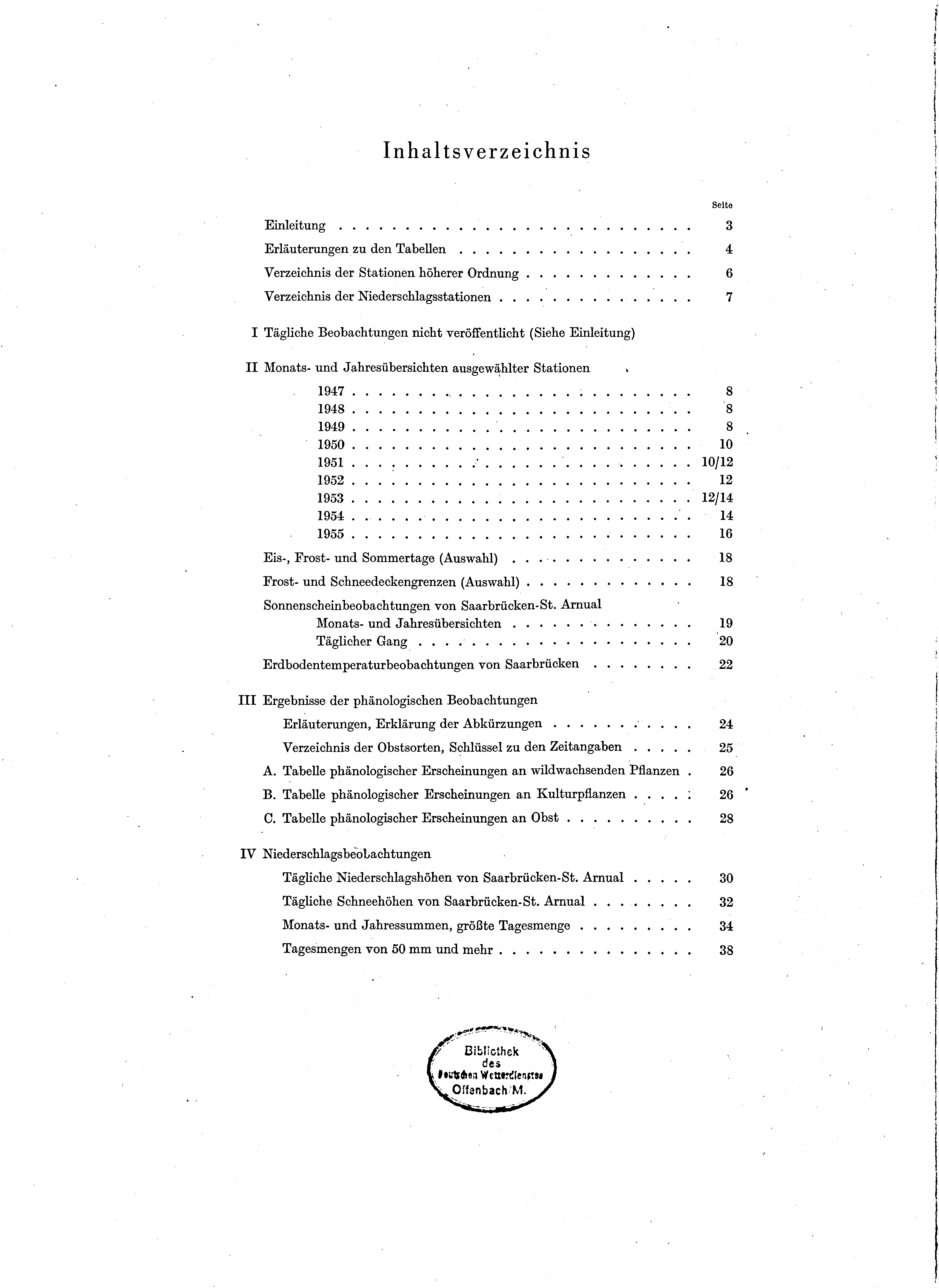 II. Monats- und Jahresübersichten ausgewählter Stationen