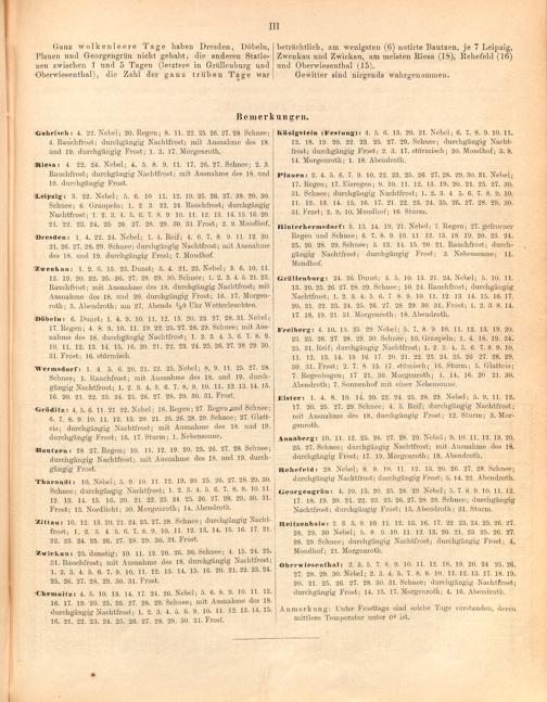 Übersicht der Resultate der meteorologischen Stationen im Königreich Sachsen