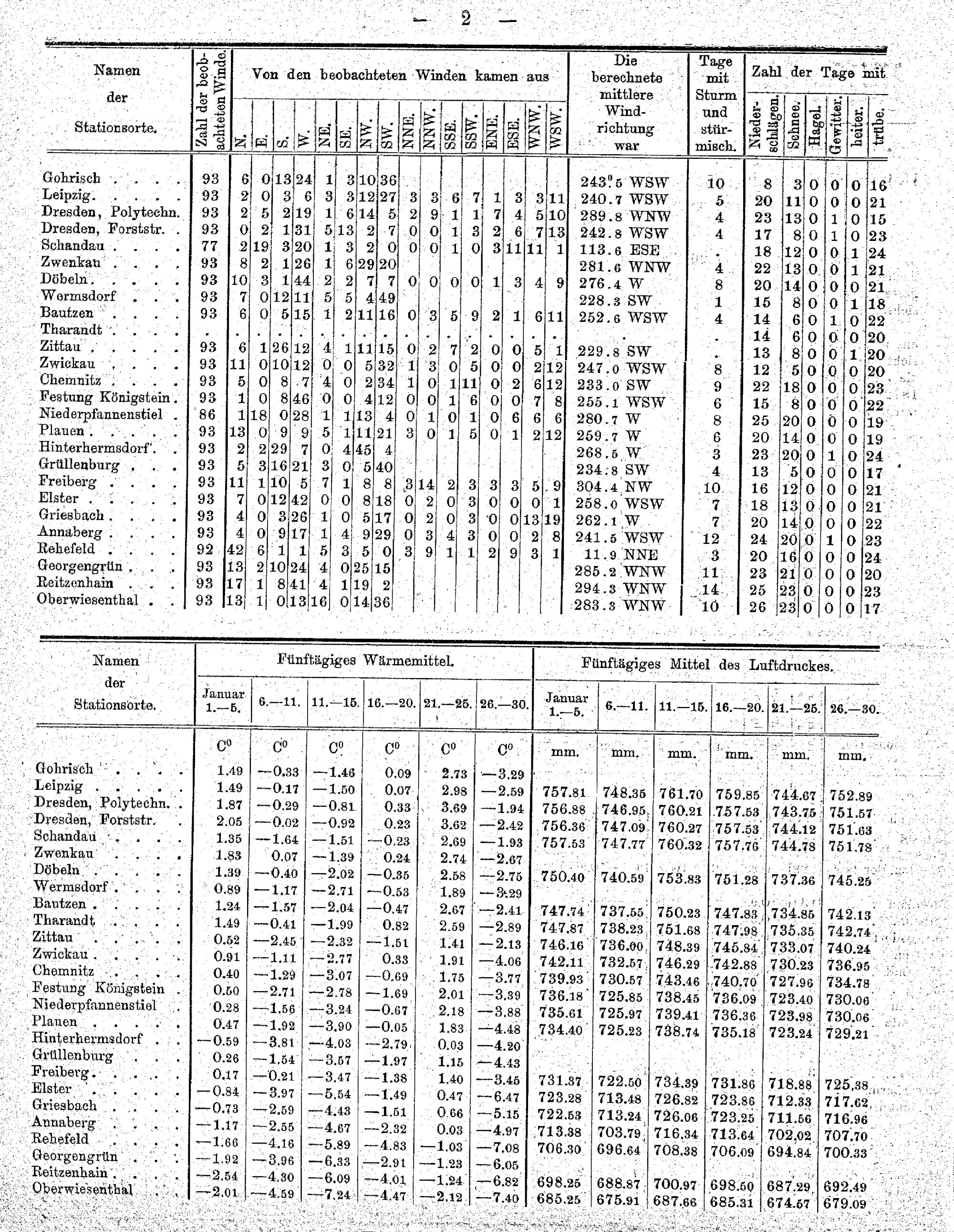 Übersicht der Resultate der meteorologischen Stationen im Königreich Sachsen