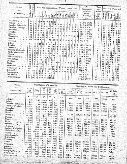 Übersicht der Resultate der meteorologischen Stationen im Königreich Sachsen
