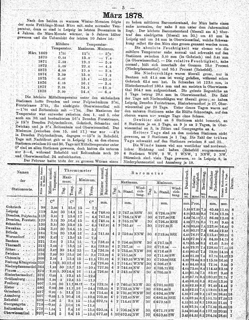 Uebersicht der Resultate der meteorologischen Stationen im Königreiche Sachsen für das Jahr 1878 / C. Bruhns