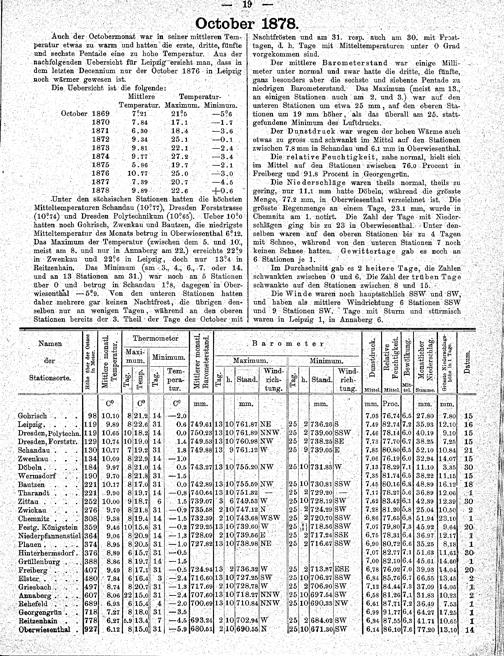 Uebersicht der Resultate der meteorologischen Stationen im Königreiche Sachsen für das Jahr 1878 / C. Bruhns