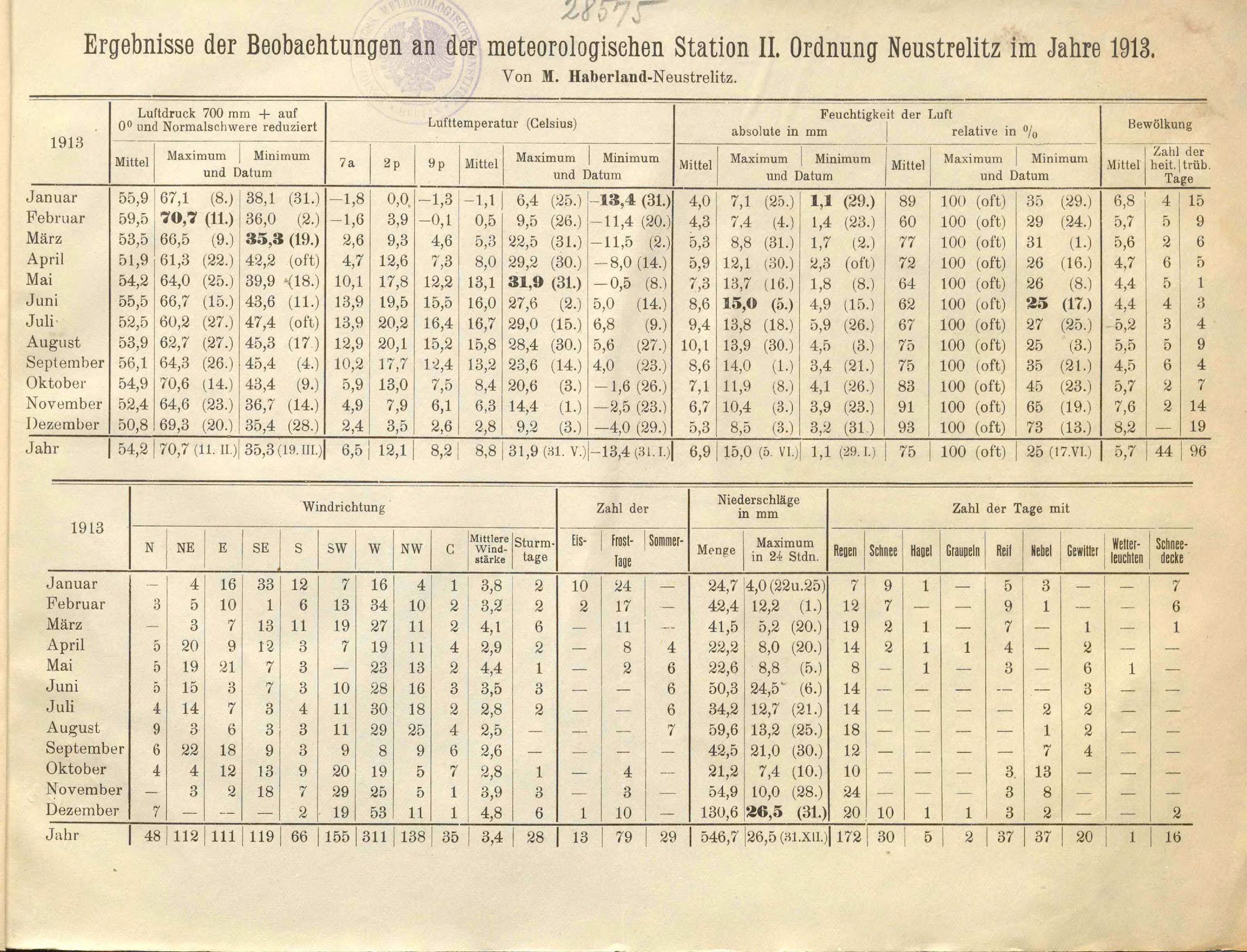 Mittelwerte aus zwanzigjährigen Beobachtungen der meteorologischen Station II, Ordnung Neustrelitz / M. Haberland