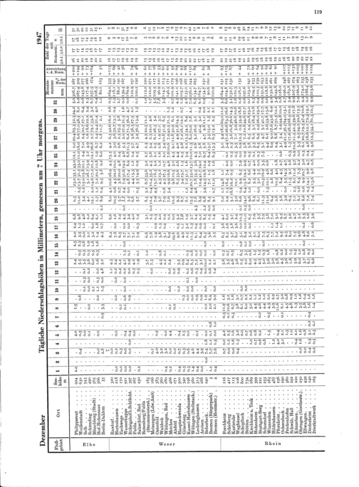 Tagessummen der Sonnenscheindauer von 23 Stationen