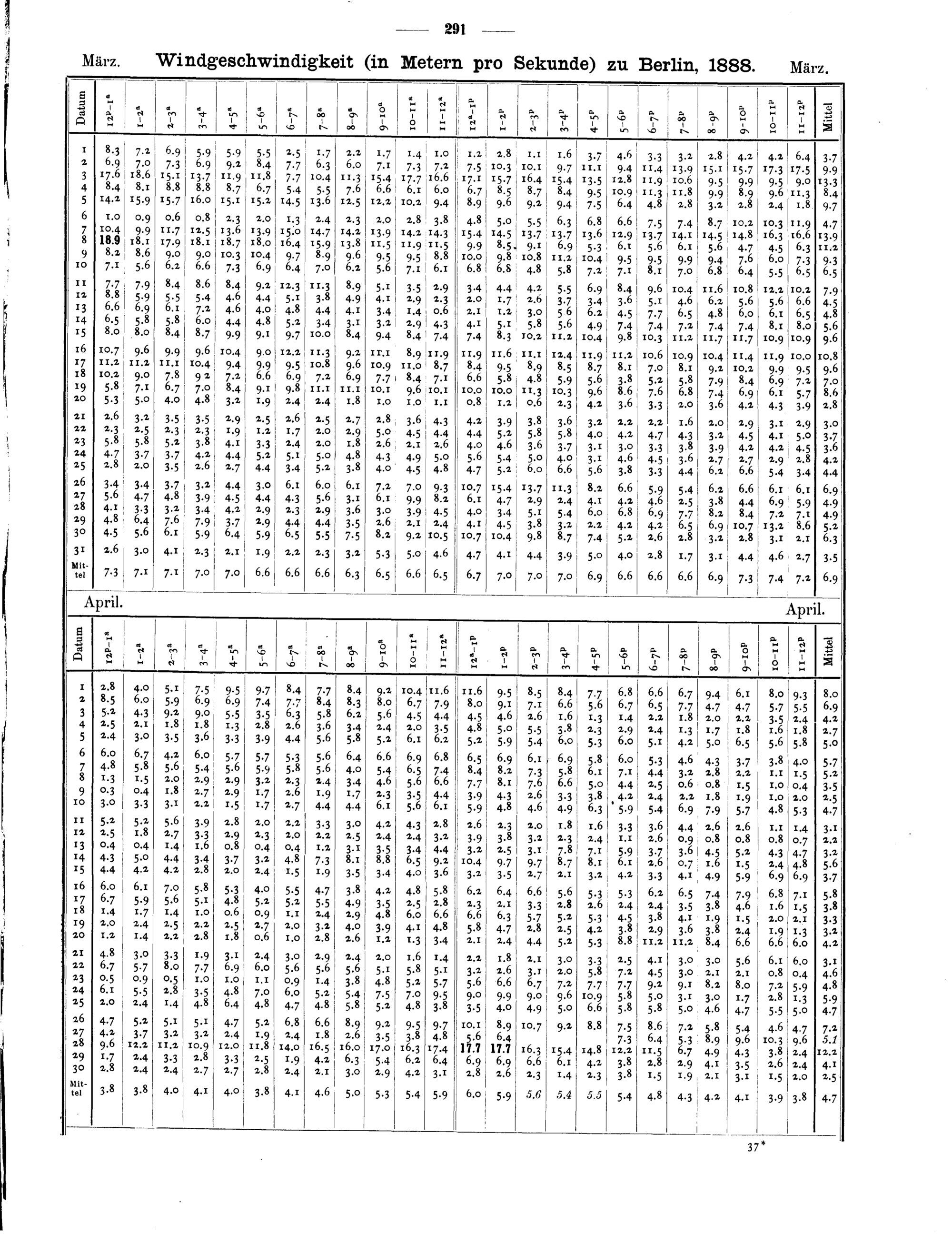 Stündliche Werthe der Windgeschwindigkeit zu Berlin