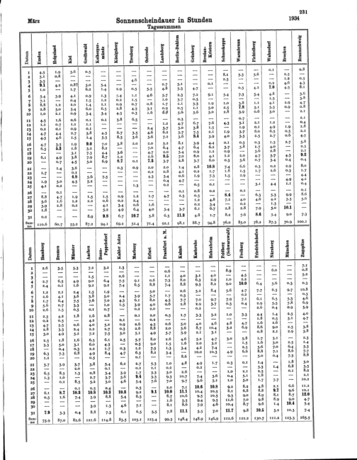 Sonnenscheindauer / Tagessummen von 36 Stationen